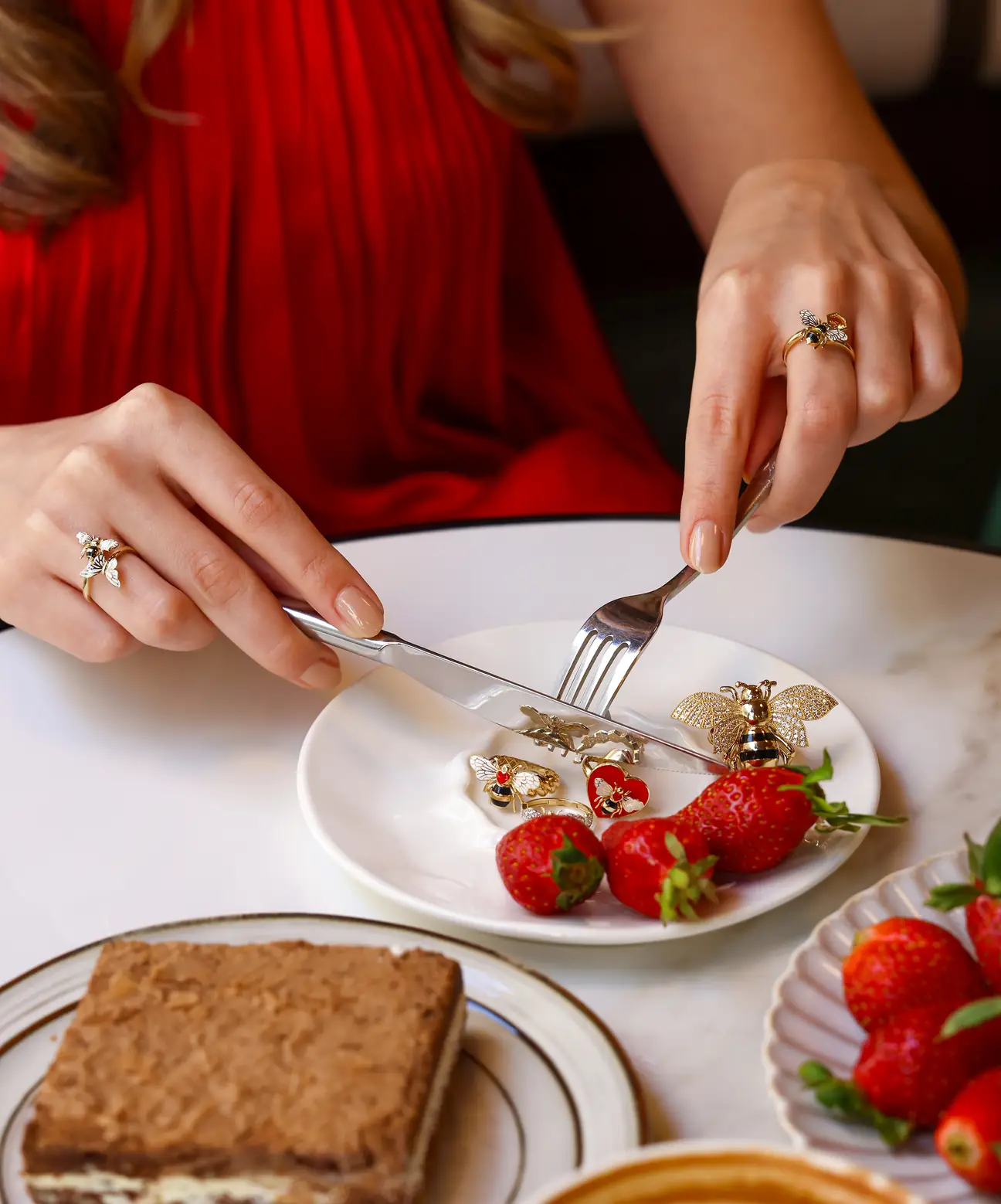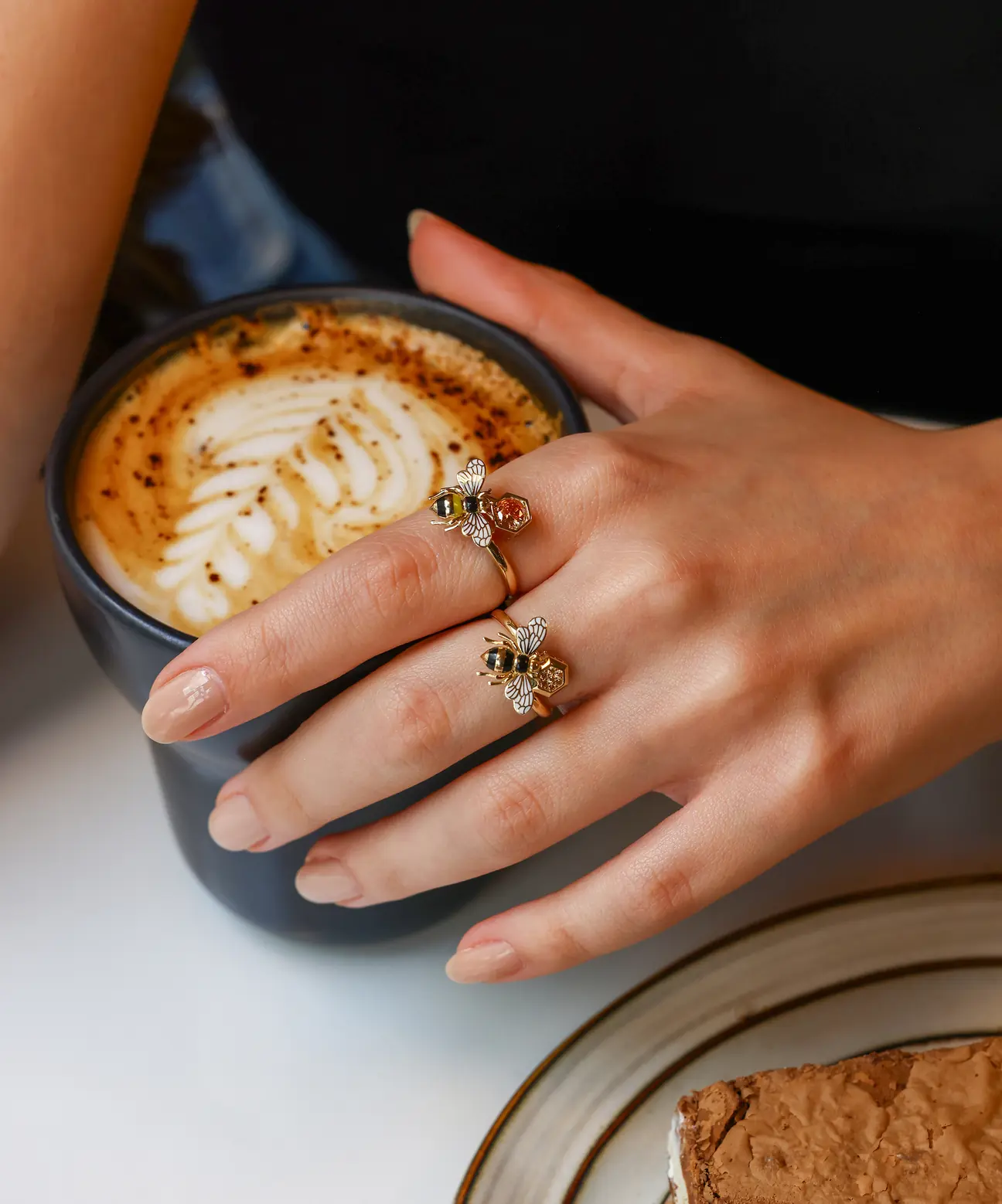 Tasarım Tipi Arı Motifli Renkli Taşlı Yüzük (Bee Mine Koleksiyonu)