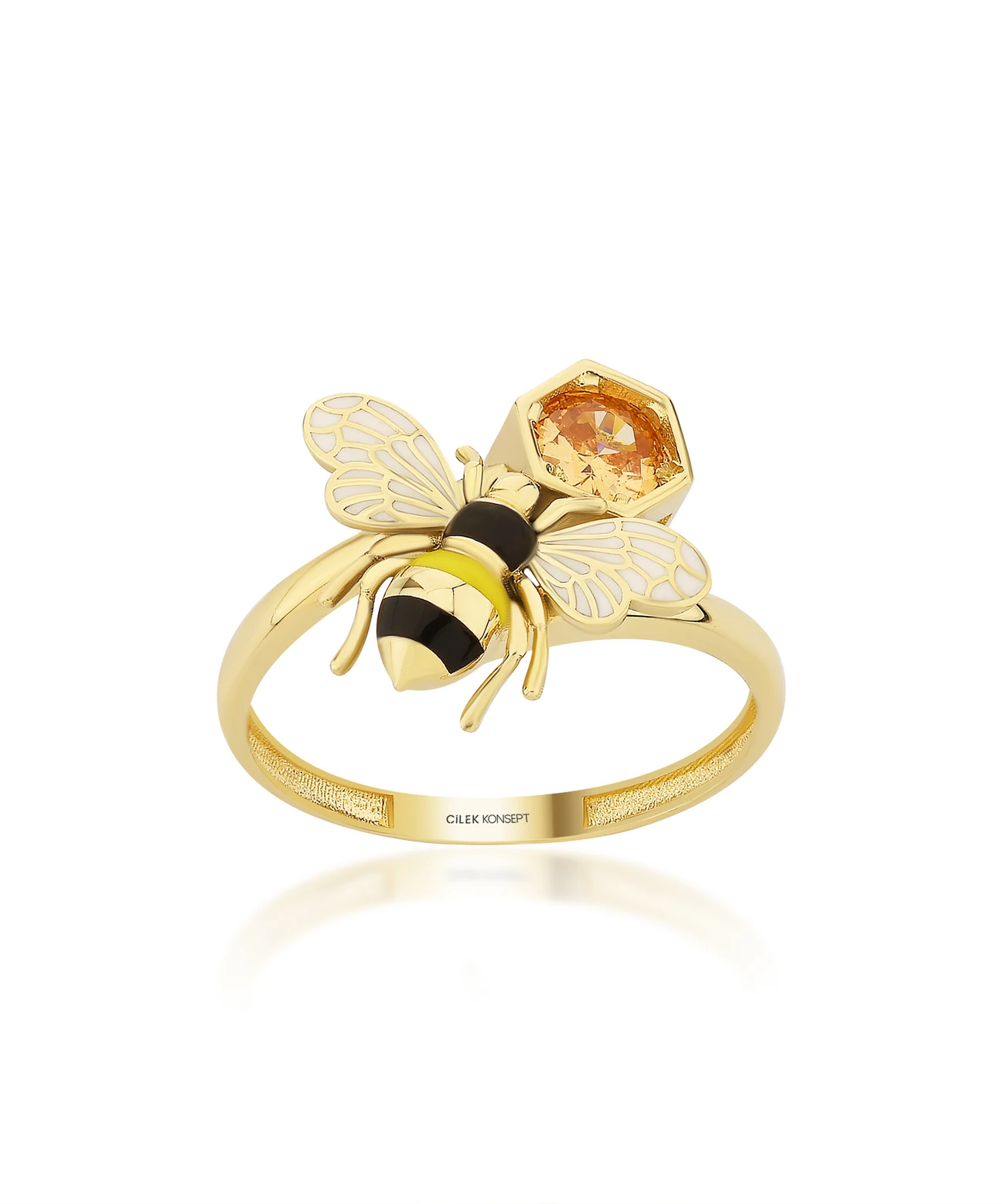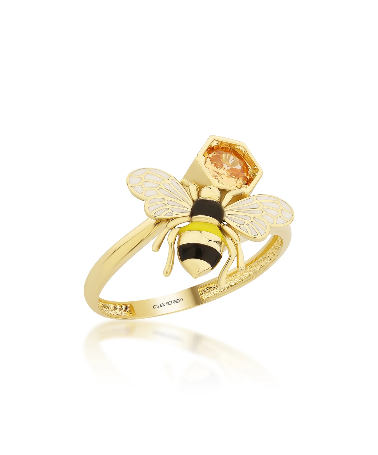 Bee Mine Altın Arı Renkli Taşlı Yüzük
