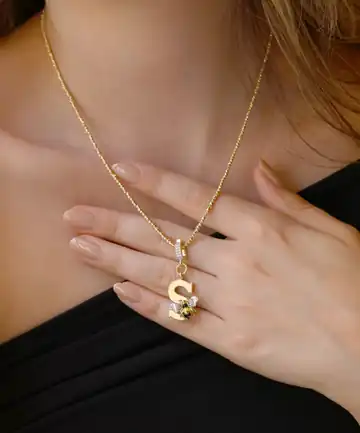 Bee Mine Altın Arı S Harf Kolye Ucu