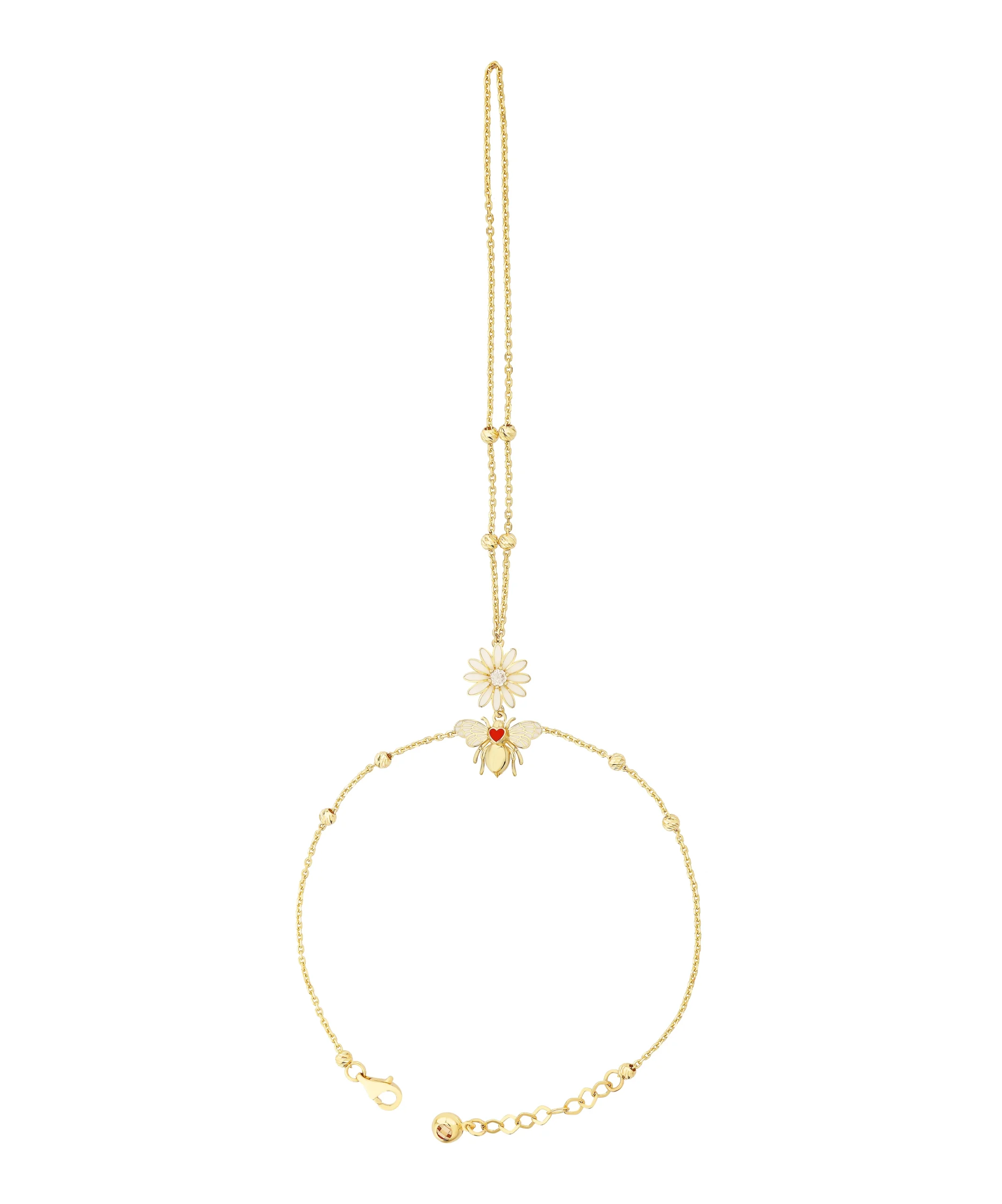 İkra Kuyumculuk koleksiyonuna ait bu Bee Mine Altın Arı Şahmeran, doğanın zarafetini yansıtan arı, çiçek ve kalp figürlerini 14 ayar altın kalitesiyle bir araya getirir. 4.98 gram ağırlığındaki bu tasarım, ışıltılı taş detayları ve bilekten parmağa uzanan estetik yapısıyla el üzerinde göz alıcı bir duruş sergiler.