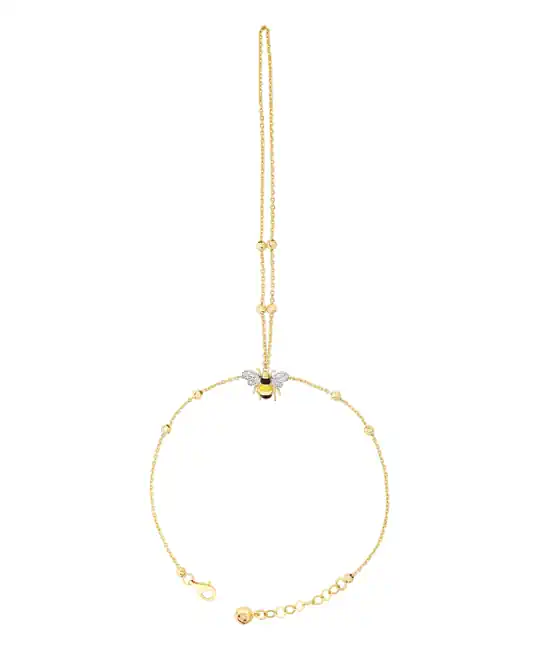 Yüksek işçilik kalitesiyle hazırlanan bu model, doğadan ilham alan arı motifini el takısı zarafetiyle birleştirerek stilinize özgün ve sofistike bir dokunuş katar.