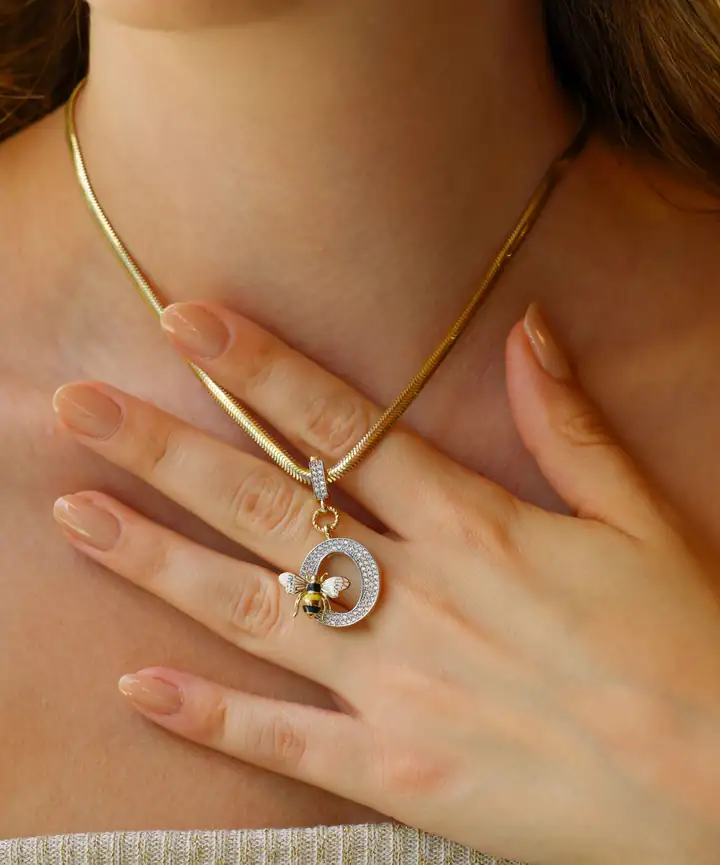 Tasarım Tipi Taşlı Arı ve O Harfi Motifli Kolye Ucu
