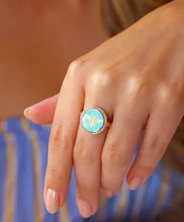 Tasarım Tipi Arı Motifli Turkuaz Mineli Yüzük (Bee Mine Koleksiyonu)