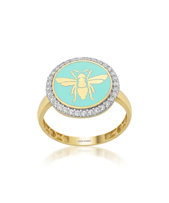 Bee Mine Altın Arı Turkuaz Mineli Yüzük