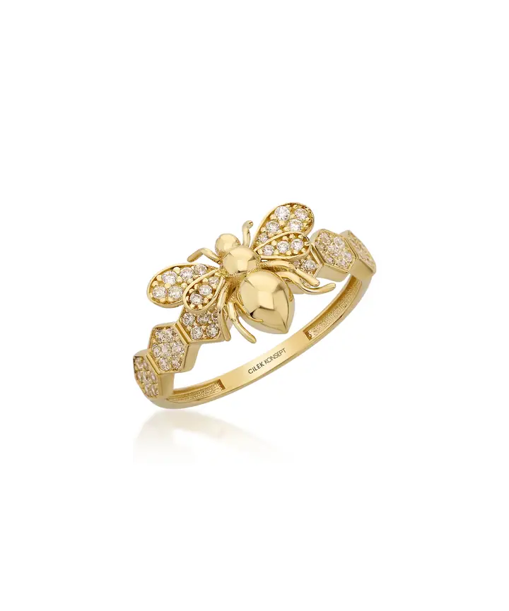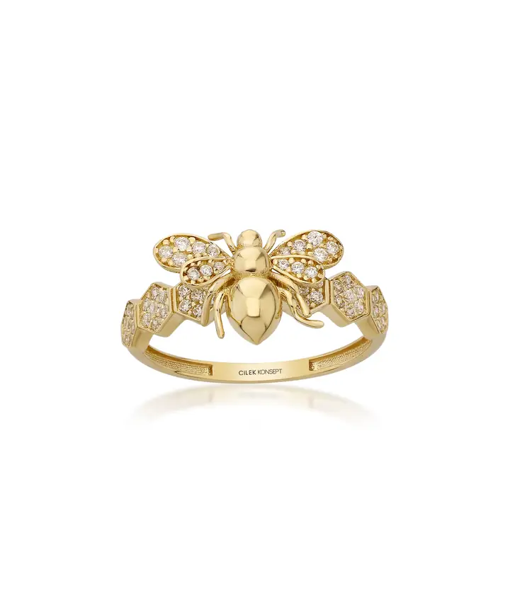 İkra Kuyumculuk kalitesiyle 14 ayar altından özenle üretilen bu Bee Mine Altın Arı Yüzük, çalışkanlığı ve zarafeti parmağınıza taşıyor. “Bee Mine” (Benim Ol) temasıyla tasarlanan bu yüzük, detaylı işçiliğe sahip zarif bir Arı figürüne sahiptir. Minimalist ve narin tasarımı, altının doğal ışıltısını ön plana çıkarır.