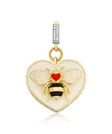 Bee Mine Altın Beyaz Kalp Kolye Ucu