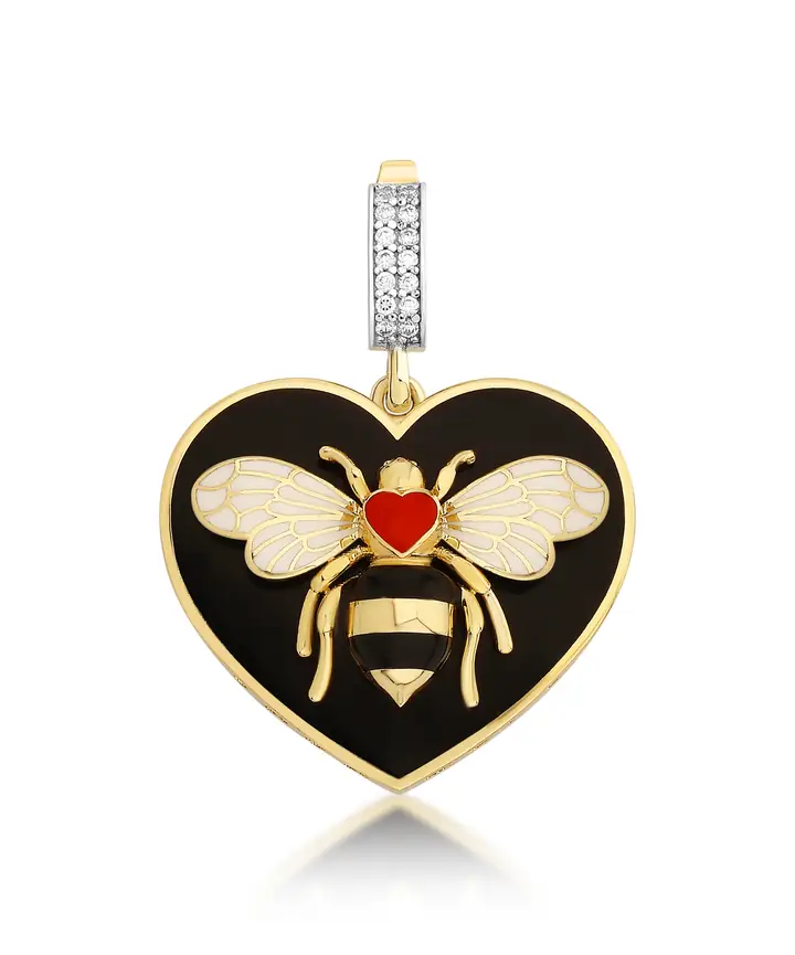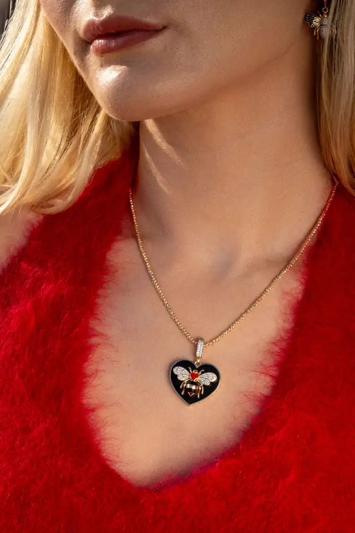 Bee Mine Altın Siyah Kalp Kolye Ucu
