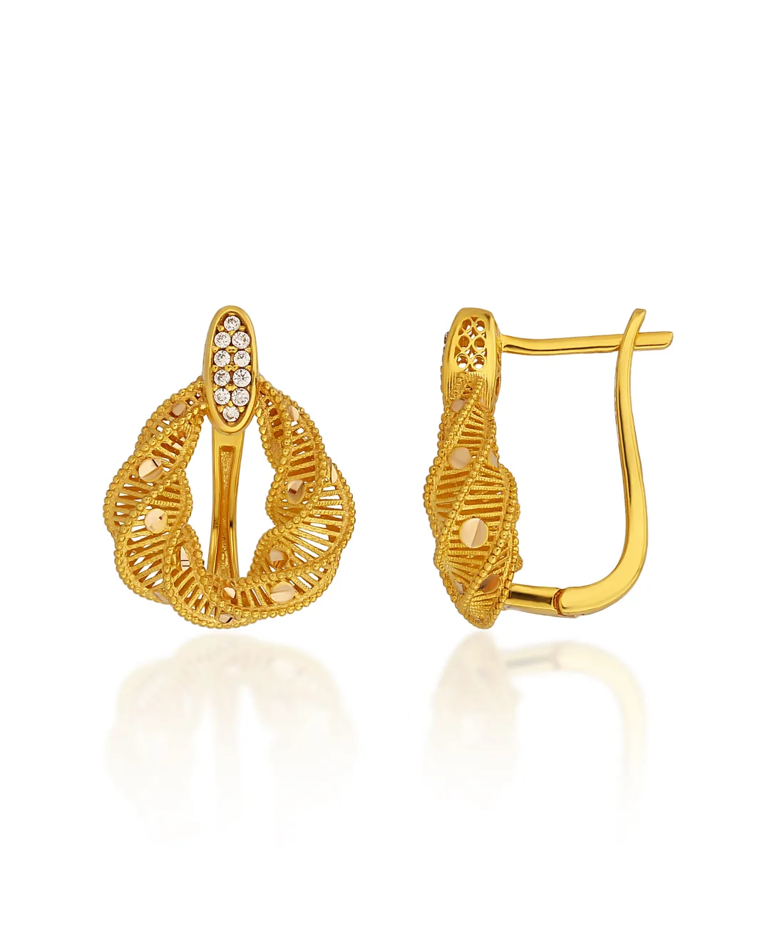Bereket koleksiyonunun karakteristik duruşunu yansıtan bu küpe modeli, 14 ayar altın kalitesiyle üretilmiştir. 4.53 gram ağırlığı sayesinde kulakta dengeli ve konforlu bir kullanım sunar. Günlük şıklığı tamamlayan sade tasarımı, uzun süreli kullanımda formunu ve parlaklığını koruyacak şekilde tasarlanmıştır. Klasik çizgileri modern bir yaklaşımla buluşturan bu model, zamansız altın küpe arayışında olanlar için güçlü bir tercih oluşturur.