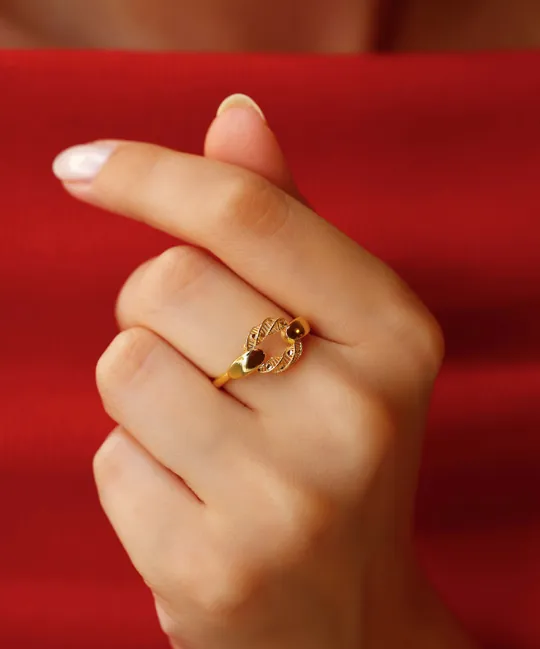 Bereket koleksiyonunun minimal ve dengeli tasarım anlayışını taşıyan bu yüzük, günlük kullanım ve özel kombinler için uygun bir parçadır. 14 ayar altın yapısı, dayanıklılık ve uzun ömürlü kullanım sağlar. Koleksiyonun küpe, bileklik ve kolye ucu modelleriyle uyumlu tasarımı, 1.43 gram ağırlığıyla elde konforlu bir kullanım sunar ve Bereket temasının karakteristik detaylarını tamamlar.