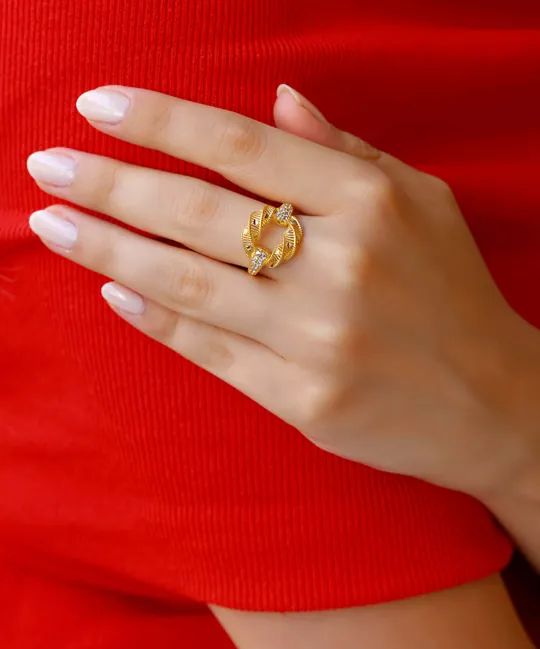 Bereket koleksiyonunun minimal ve karakteristik tasarım çizgilerini yansıtan bu yüzük, günlük kullanım ve özel kombinler için uygundur. 14 ayar altın yapısı, dayanıklılık ve uzun ömürlü kullanım sağlar. Koleksiyonun küpe, bilezik ve kolye ucu modelleriyle uyumlu olacak şekilde tasarlanan bu yüzük, 2.68 gram ağırlığıyla elde konforlu bir kullanım sunar ve Bereket temasının karakteristik detaylarını ön plana çıkarır.