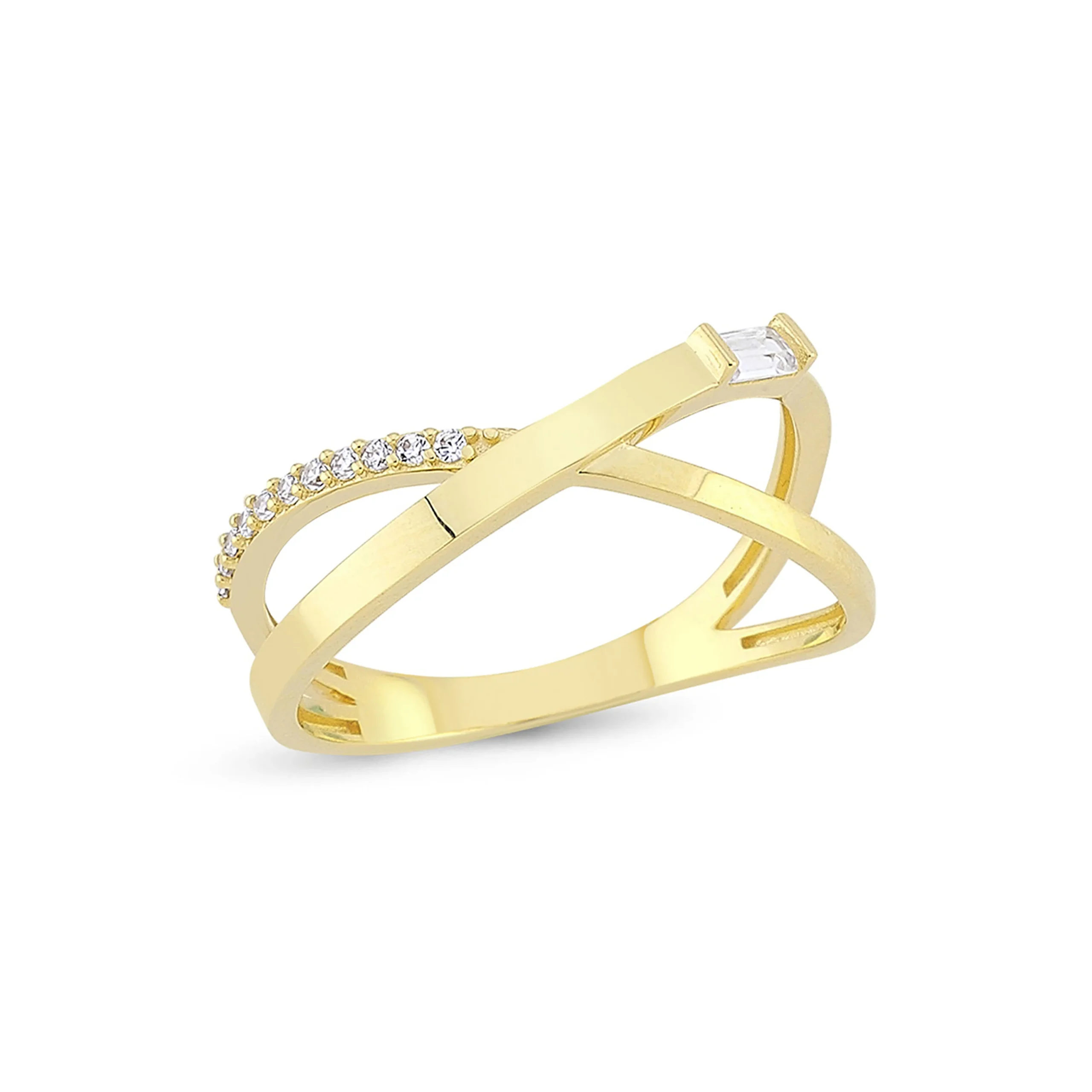 14 ayar Cabaret Duet Baget Altın Yüzük, 2,10 gr ağırlığı ve 5A Zirkon detayı ile zarif ve şık bir kullanım sunar. Hipoalerjenik ve güvenli üretim.