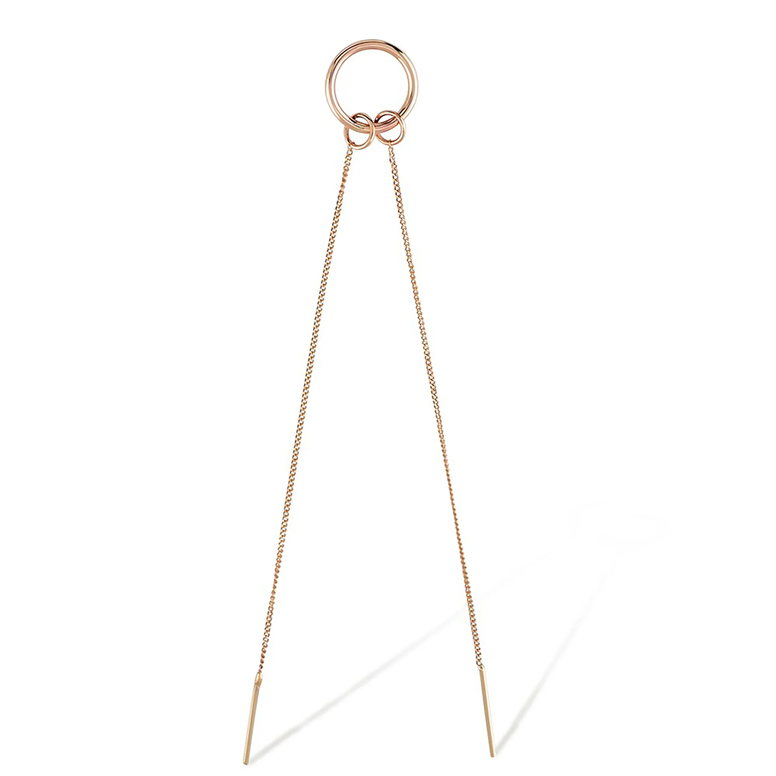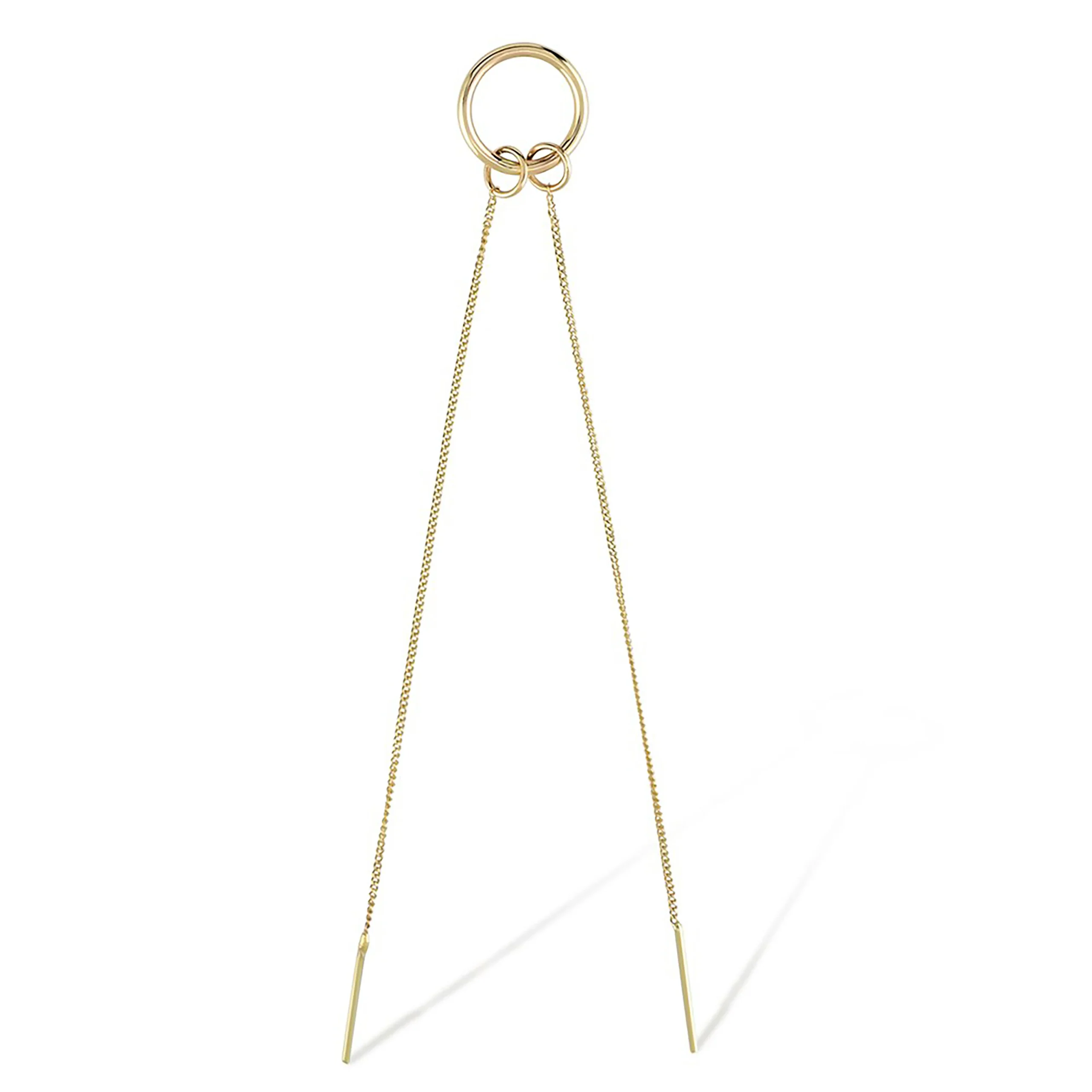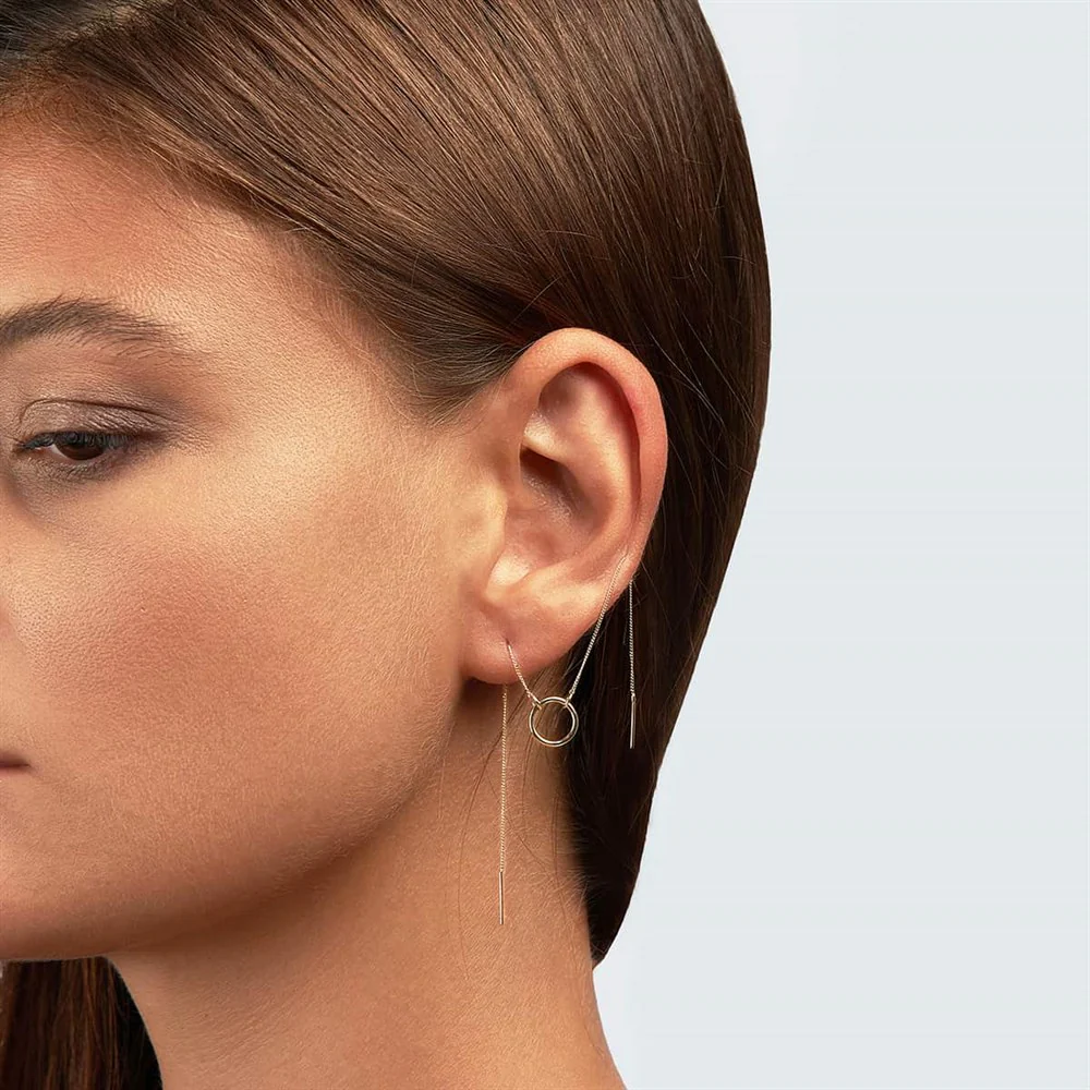 Modern tasarımın ışıltılı yansıması olan Cabaret Halka ve Zincir İkili Tek Altın Küpe, zincir ve halka detaylarının mükemmel uyumunu bir araya getirir. Tekli olarak satılan bu küpe, farklı küpe uçlarıyla kombinlenebilir yapısıyla kişisel tarzınızı tamamlar. 14 ayar altından üretilen model, zarif formu ve uzun zincir tasarımıyla günlük ve özel günlerde dikkat çekici bir şıklık sunar.