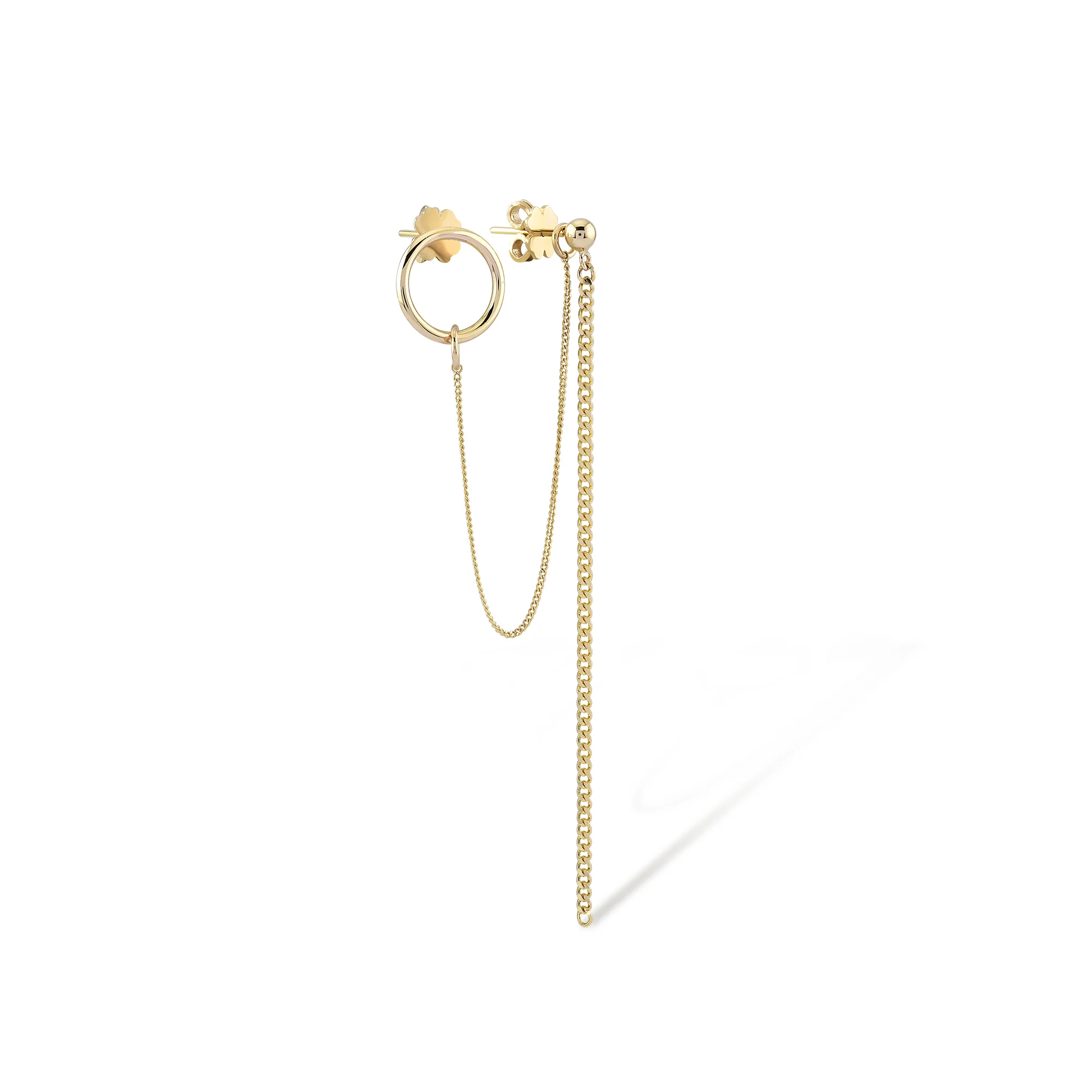 Zarafeti ve modernliği bir arada sunan Cabaret Halka Zincir Tek Altın Küpe, halka ve zincir detaylarının şık birleşimiyle öne çıkar. Tekli olarak satılan bu küpe, 14 ayar altından üretilmiş olup hem günlük kullanımda hem de özel davetlerde stilinizi tamamlayacak şık bir aksesuardır. Orjinal Rose, Sarı ve Beyaz Altın seçenekleriyle kişisel tarzınıza uygun bir seçim yapabilirsiniz.