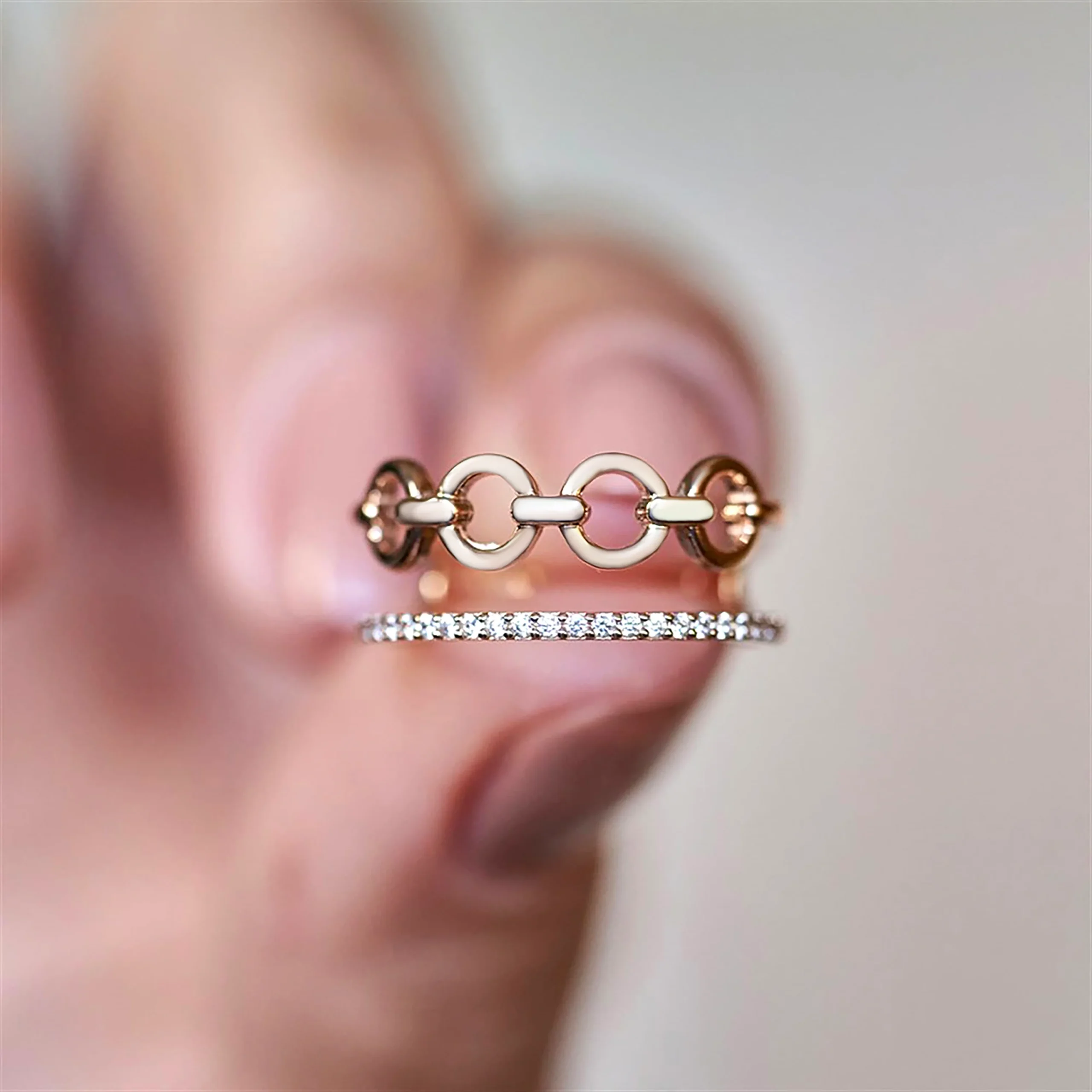 14 ayar altın ile tasarlanmış Cabaret İkili Altın Yüzük, iki farklı yüzük görünümünü tek bir parçada birleştiren modern ve dolgun bir tasarıma sahiptir. Yüzük, yüksek kalitede 5A Zirkon taşlarıyla süslenerek çarpıcı bir ışıltı sağlar. Yaklaşık 2,70 gram ağırlığındaki bu yüzük, güçlü ve iddialı formuyla stilinize sofistike ve özgün bir dokunuş katar. Anti-alerjik (Hypoallergenic) olup nikel ve kadmiyum içermez. Rose, Sarı ve Beyaz maden altın seçenekleriyle üretilmektedir.