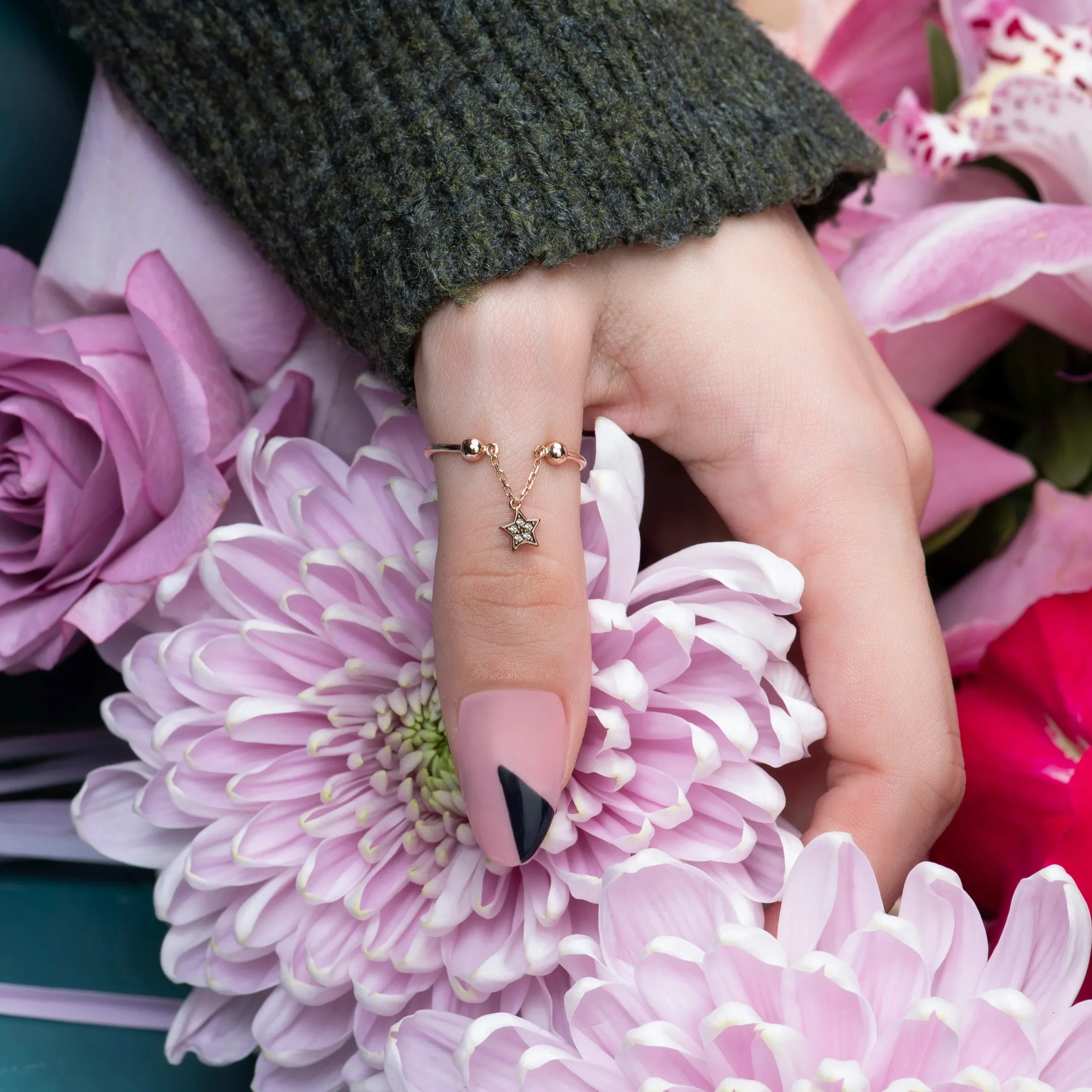 14 ayar altın ile tasarlanmış Cabaret Sallantılı Yıldız Altın Yüzük, dinamik ve göz alıcı bir tasarıma sahiptir. Yüzükten sallanan, yüksek kalitede 5A Zirkon taşlarıyla süslü yıldız motifi, her harekette ışıltı saçarak dikkatleri üzerinize çeker. Yaklaşık 1,25 gram ağırlığındaki bu yüzük, modern ve eğlenceli estetiğiyle günlük stilinize hareket katar. Anti-alerjik (Hypoallergenic) olup nikel ve kadmiyum içermez. Rose, Sarı ve Beyaz maden altın seçenekleriyle üretilmektedir.