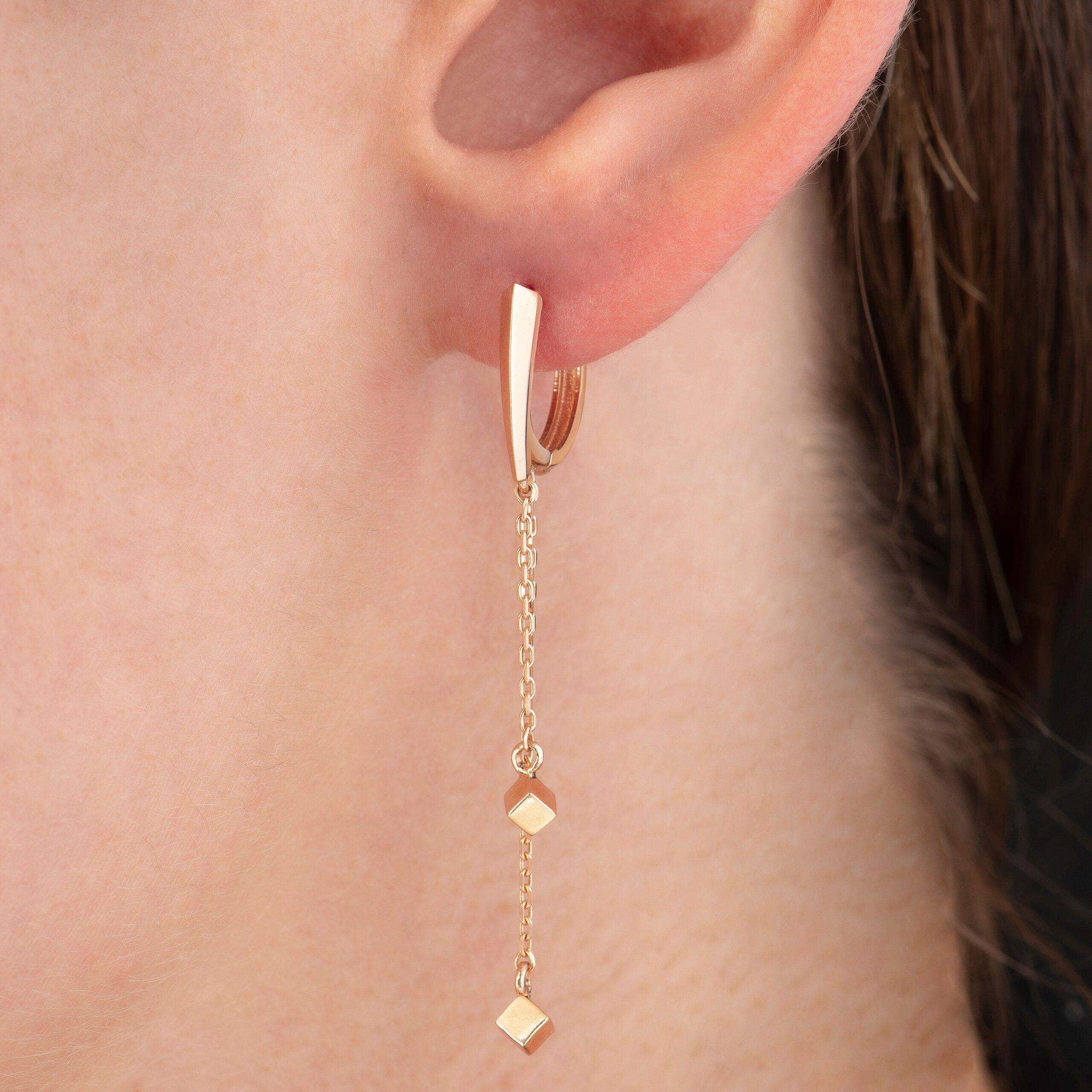 Modern çizgilerle tasarlanan Cubic Shine Küp Altın Küpe, 14 ayar altının ışıltısını geometrik zarafetle buluşturur. Küp formundaki detayları, sade ama etkileyici bir stil oluşturur. Günlük kullanımda modern bir duruş, özel günlerde ise zarif bir ışıltı sağlar.