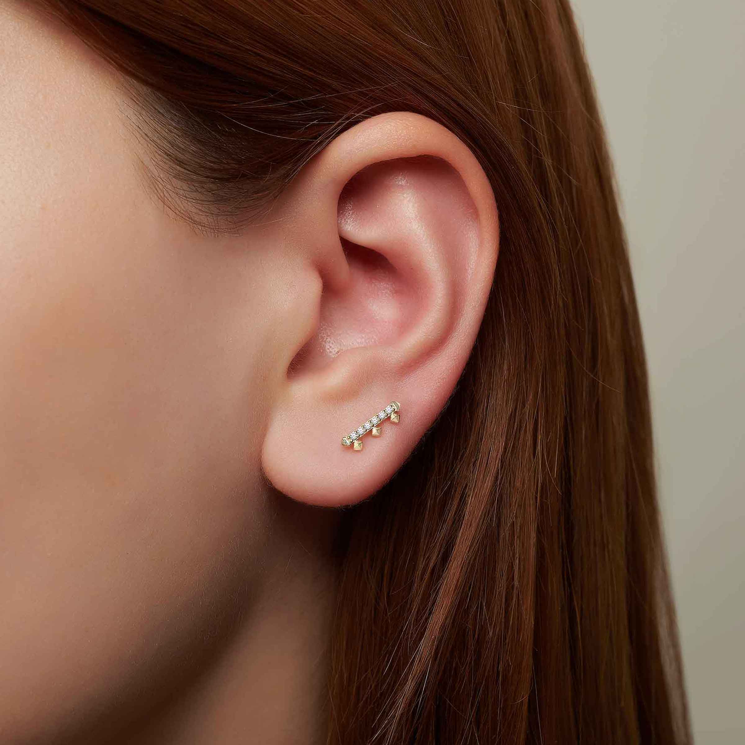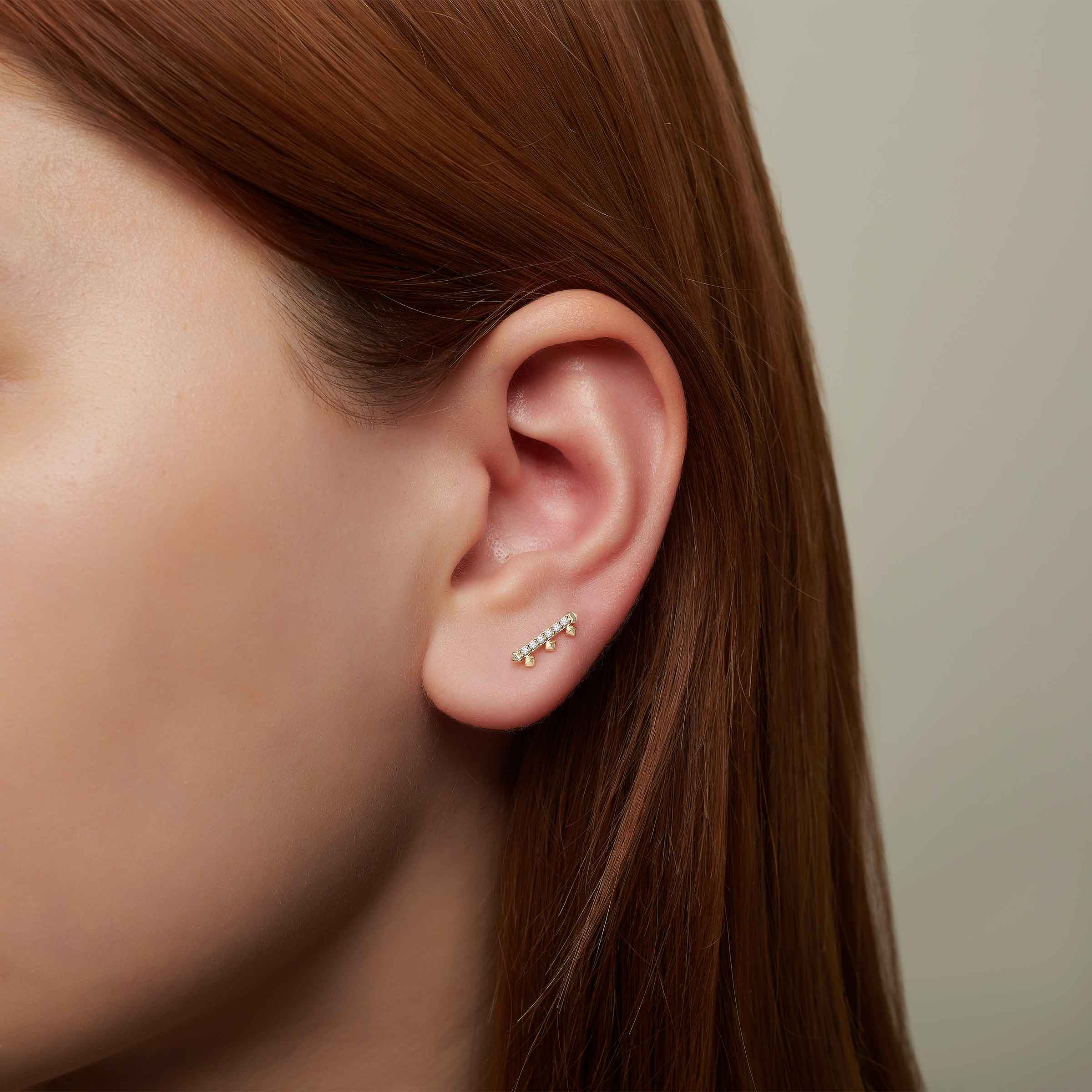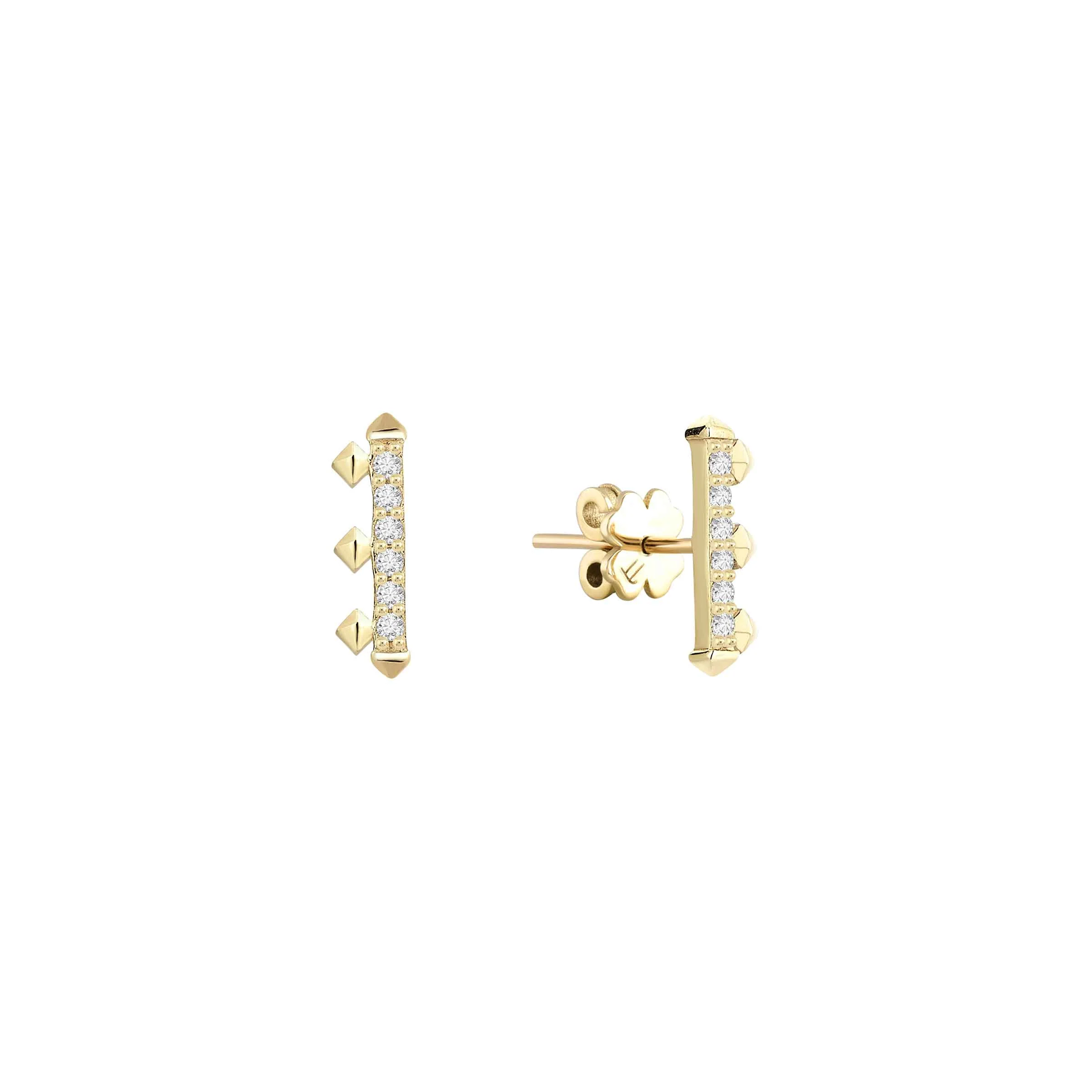 Şık bar formu ve özenle yerleştirilmiş A++ zirkon taşlar, küpeye modern bir parlaklık kazandırır.