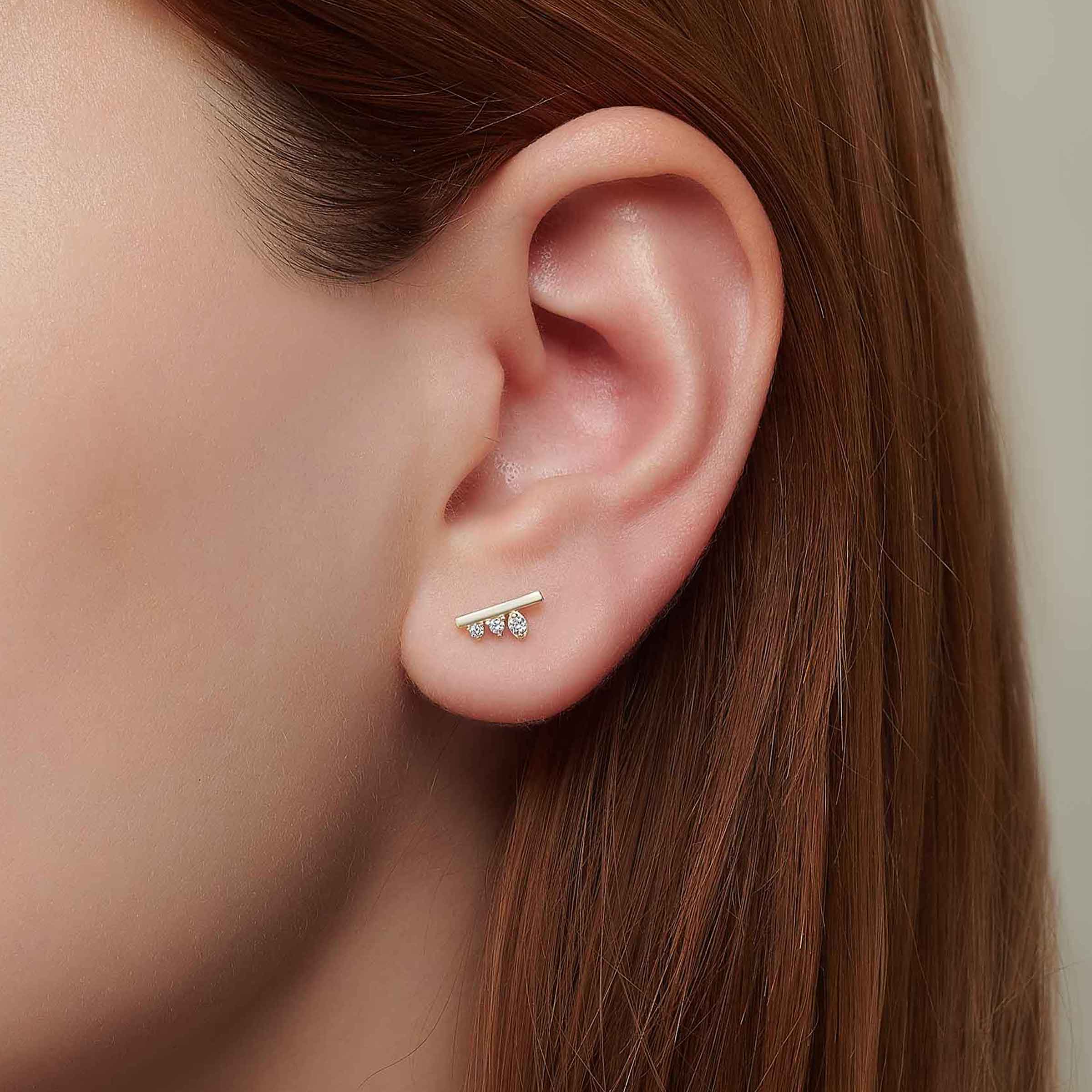 Fantazi Taşlı Bar Altın Küpe, 14 ayar altın ile tasarlanmış modern ve zarif bir aksesuardır.