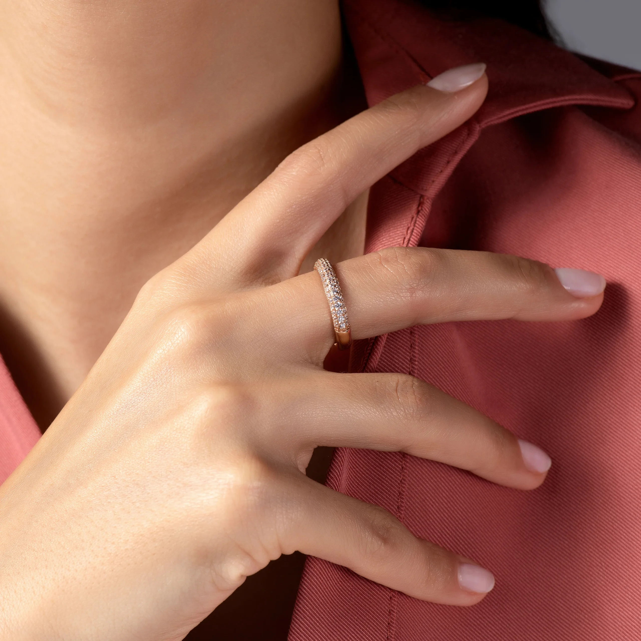 14 ayar altın ile tasarlanmış Forte Taşlı Band Altın Yüzük, kalın ve dolgun band formunu, parıldayan 5A Zirkon taşlarıyla birleştirerek güçlü ve ihtişamlı bir görünüm sunar. Yüksek kalitedeki zirkon taşları, yüzük bandını zarifçe süsleyerek göz alıcı bir ışıltı sağlar. Yaklaşık 3,20 gram ağırlığındaki bu yüzük, Forte (güçlü/tok) karakterini yansıtır; iddialı ve zamansız bir şıklık arayanlar için idealdir. Anti-alerjik (Hypoallergenic) olup nikel ve kadmiyum içermez. Rose, Sarı ve Beyaz maden altın seçenekleriyle üretilmektedir.