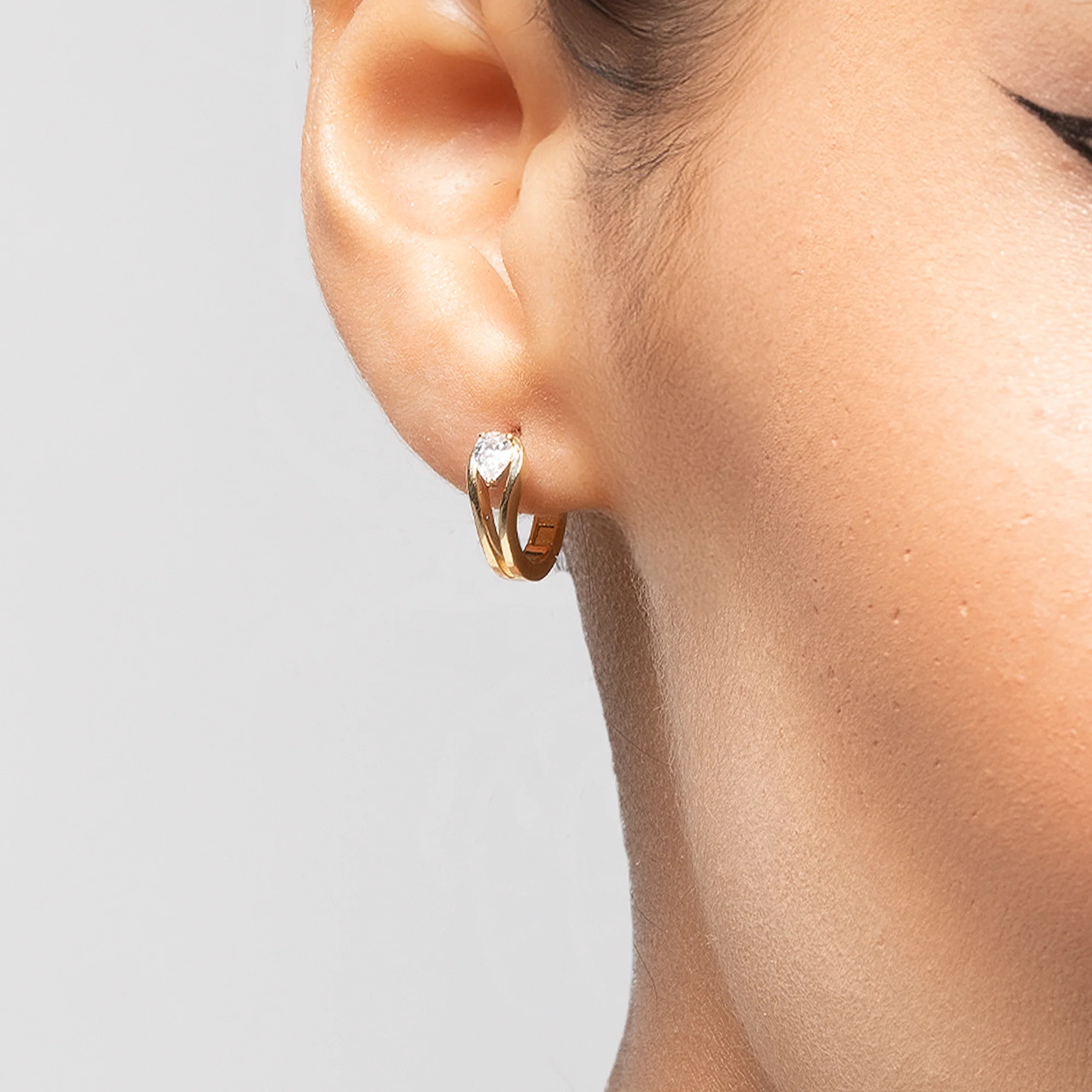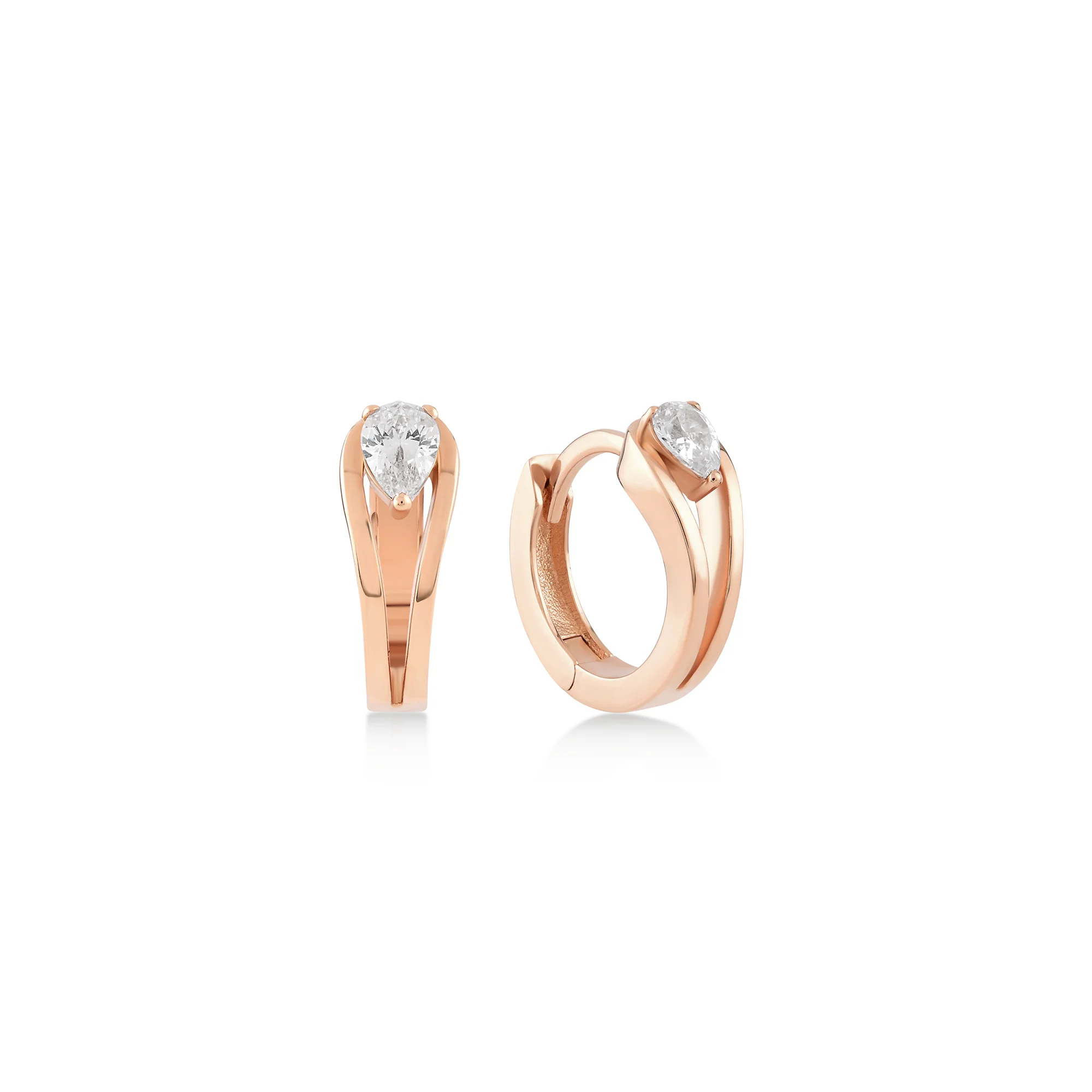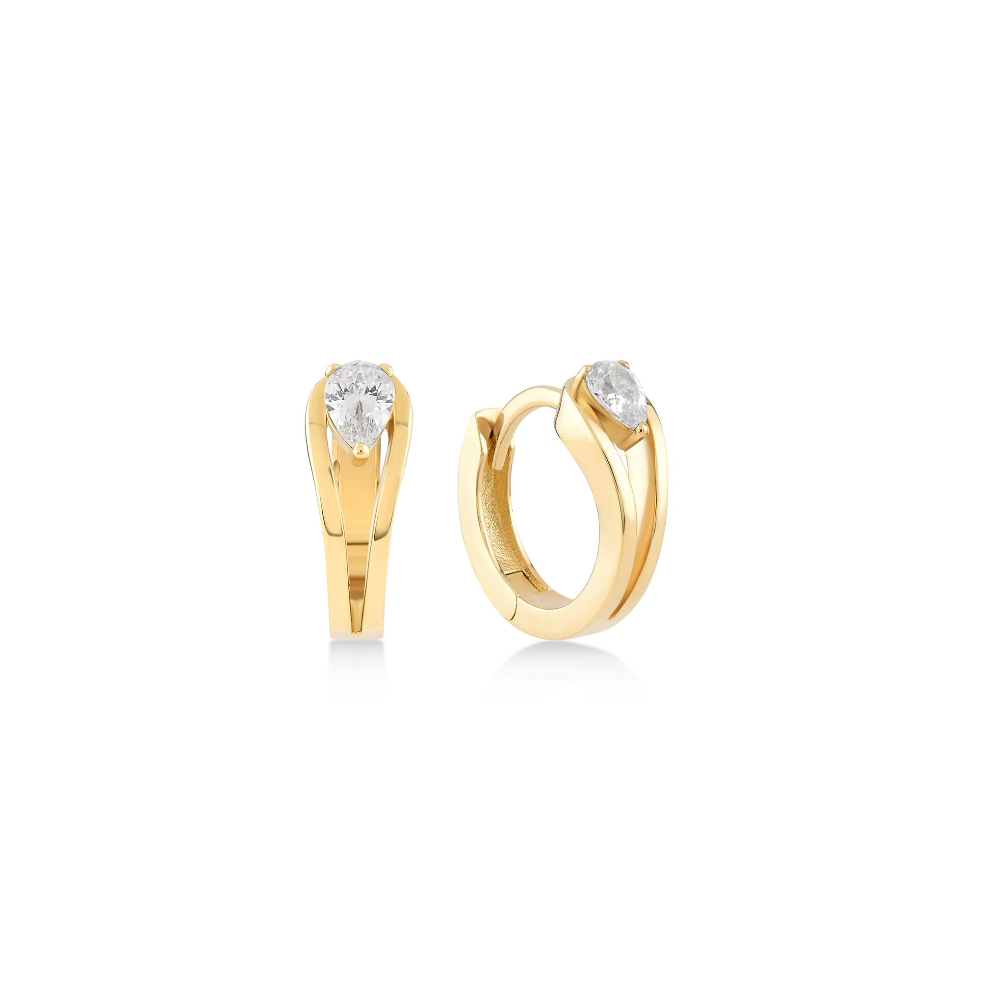Fütüristik Damla Taşlı Altın Halka Küpe