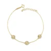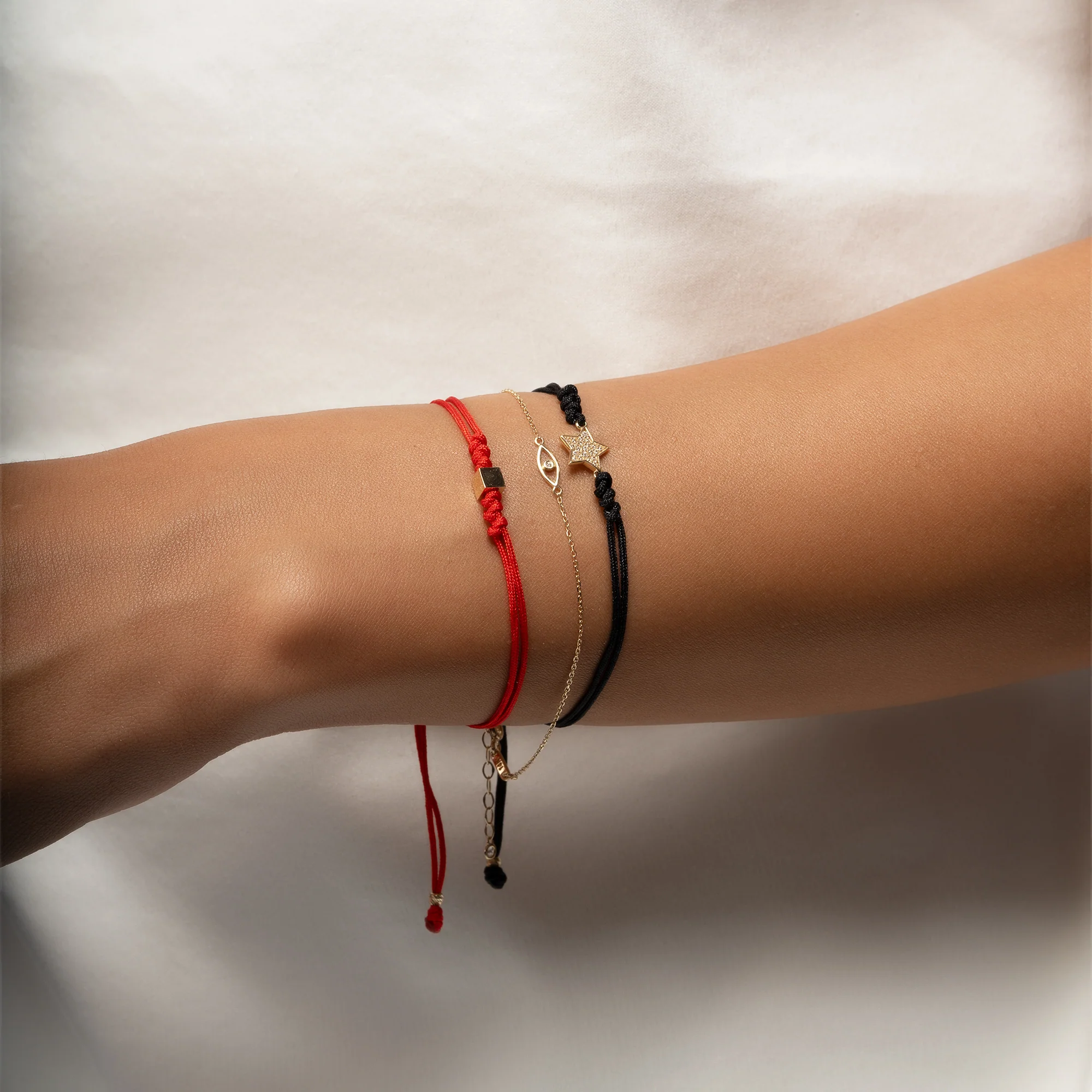 İnsanları kötü enerjiden koruyan, antik inanışlardan ilham alınarak tasarlanan bu 14 ayar altın bileklik, zarif nazar gözü figürleri ile dikkat çeker. Her bir göz figürü ışıltılı A++ Zirkon taşlarla süslenmiş olup, bileğinize hem şıklık hem de koruyucu bir anlam katıyor. Yaklaşık 0,80 gram ağırlığı ve 16,5 cm + 2 cm uzatmalı zinciri sayesinde rahat kullanım sunar. Sarı, rose ve beyaz altın seçenekleri mevcuttur.