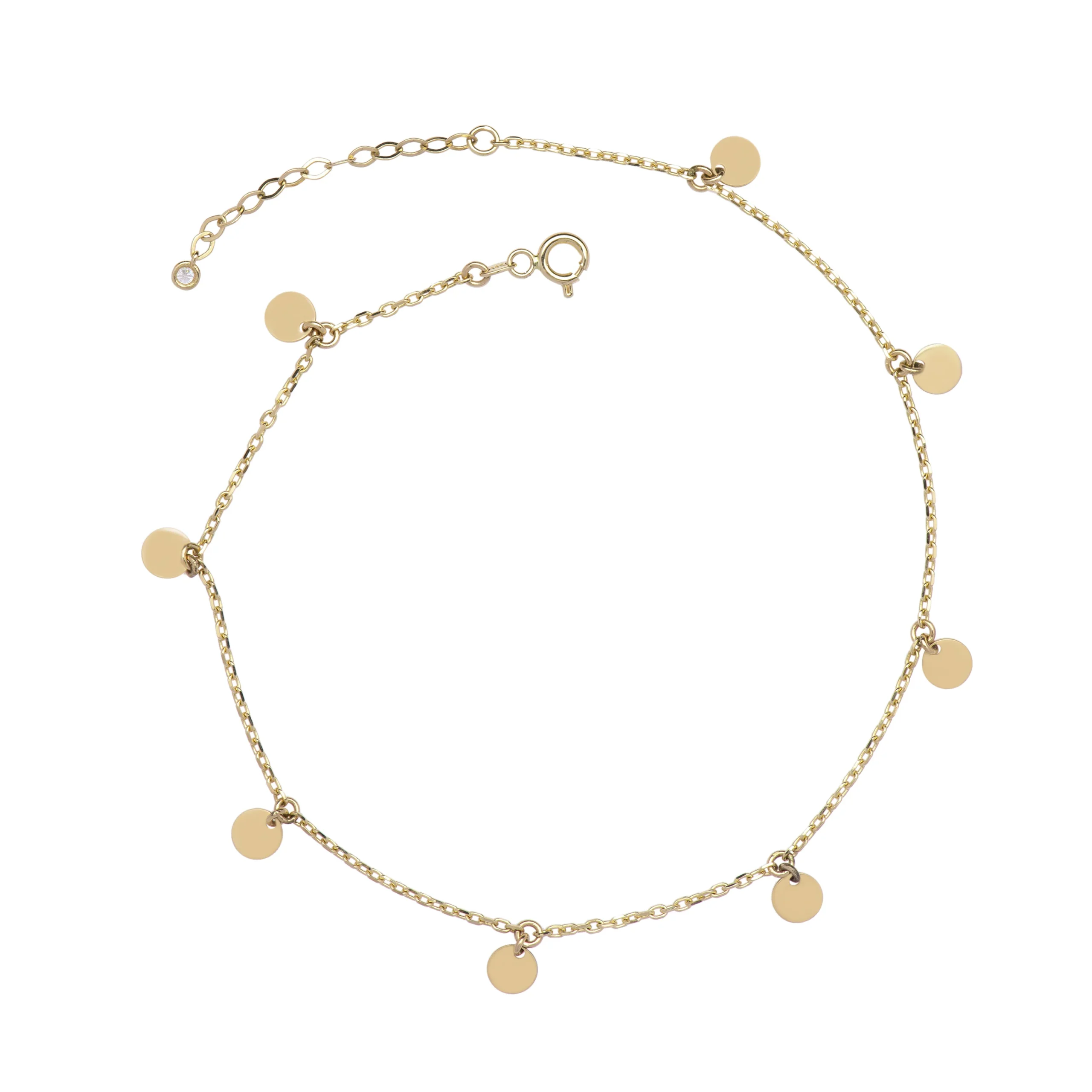 14 ayar Gravity Pul Sallantılı Halhal, 23+2 cm uzunluk ve 2,60 gr ağırlık ile zarif ve şık bir kullanım sunar. Hipoalerjenik ve güvenli üretim.