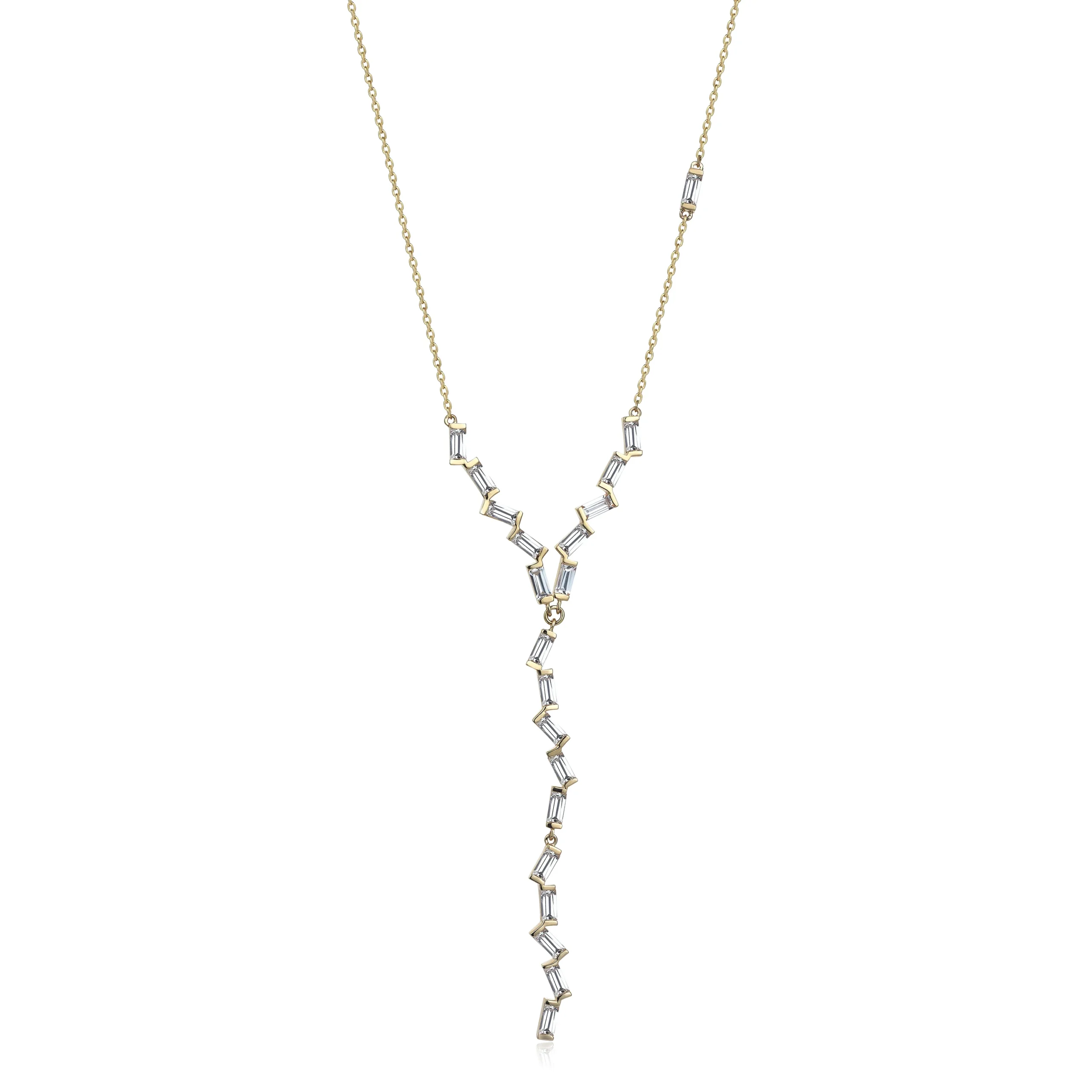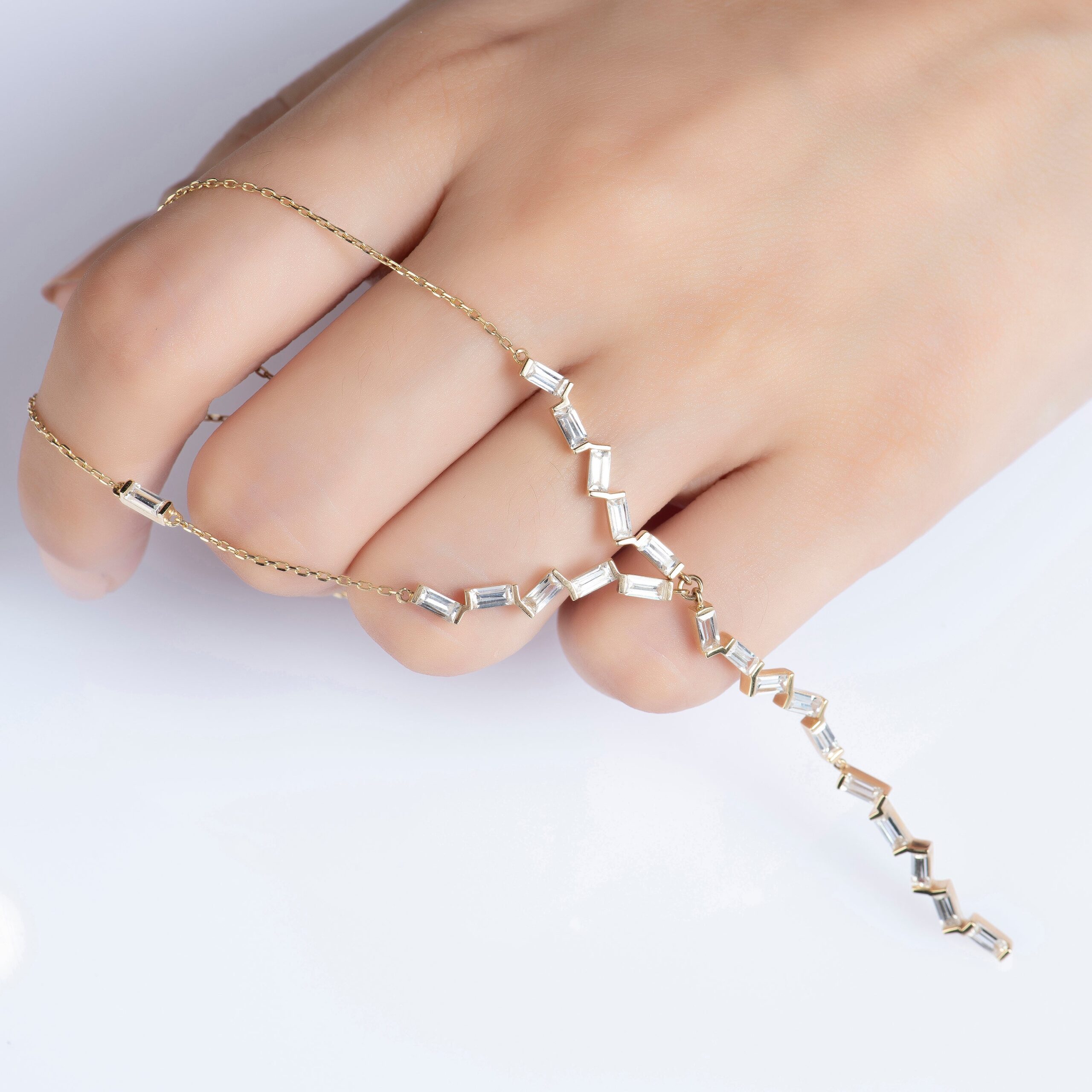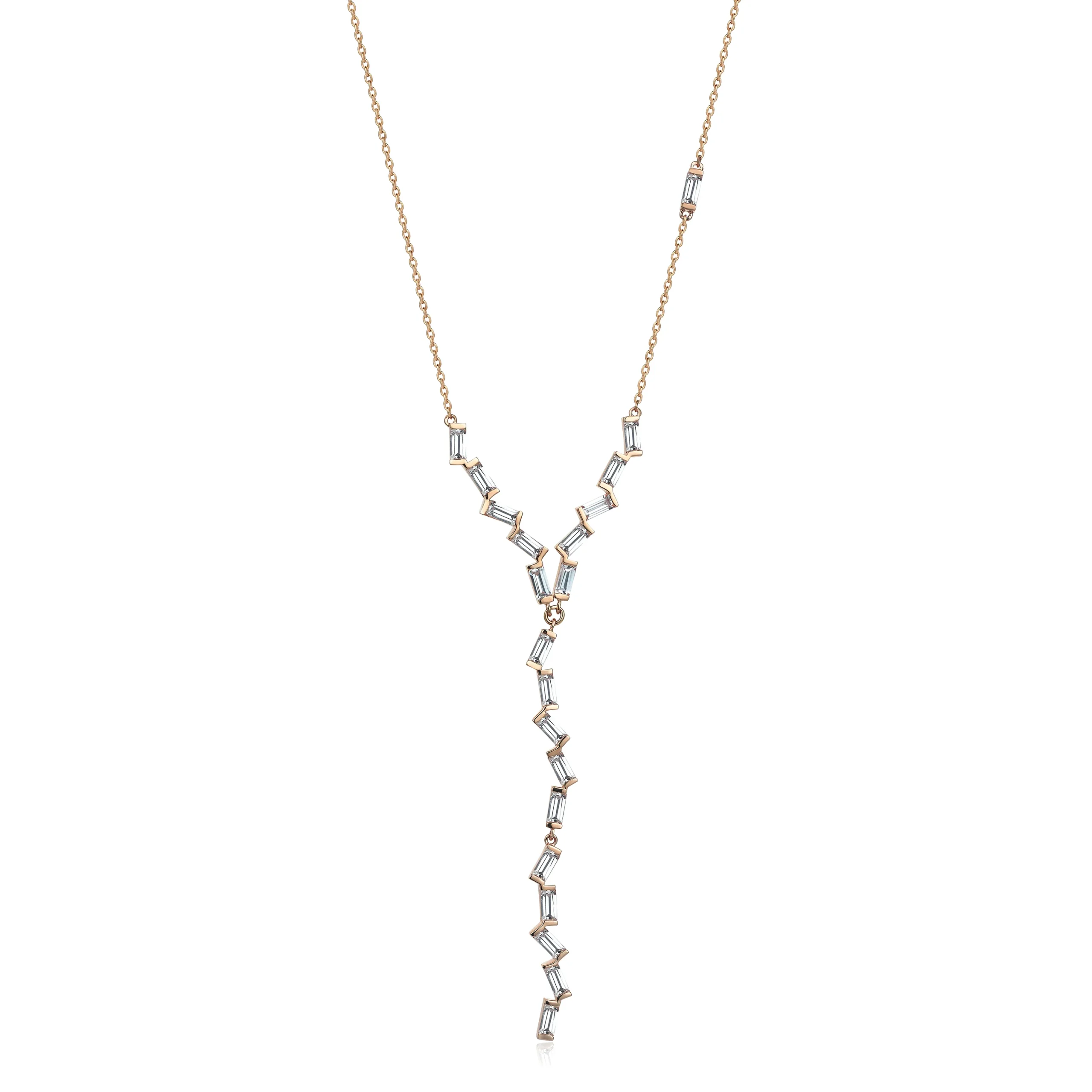 14 ayar altından tasarlanan Bagetto Zigzag Sallantılı Taşlı Altın Kolye, zarif sallantılı zigzag tasarımı ve parlak AAA+ zirkon taşlarıyla stilinizi ön plana çıkarır. Dinamik zigzag formu, taşların ışıltısıyla birleşerek boyunda modern ve göz alıcı bir duruş sergiler. 5,60 gram ağırlığı ve 43+2 cm uzatmalı zincir uzunluğu ile hem şık hem de konforlu kullanım sağlar. Rose, sarı ve beyaz altın renk seçenekleriyle her tarza mükemmel uyum sunar.