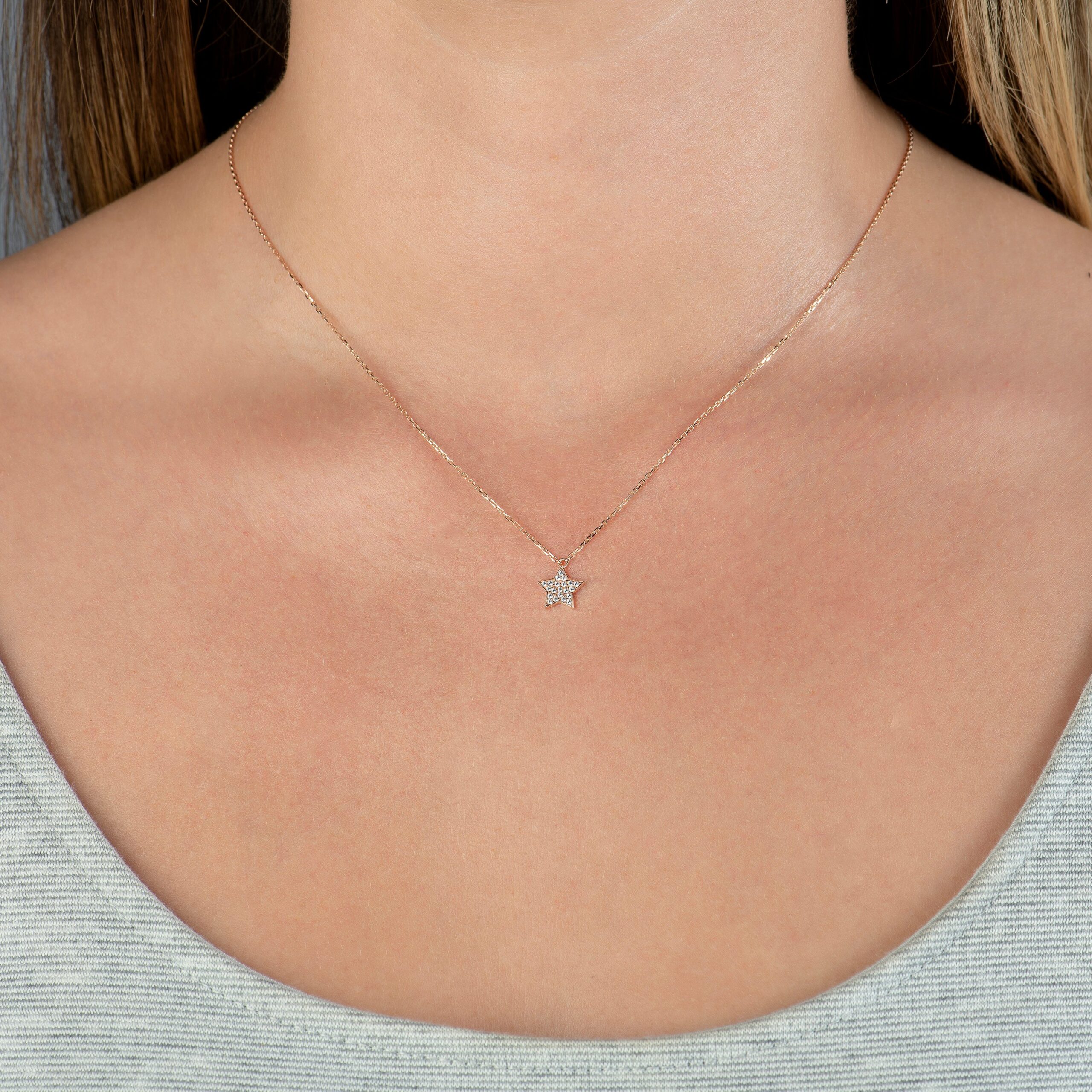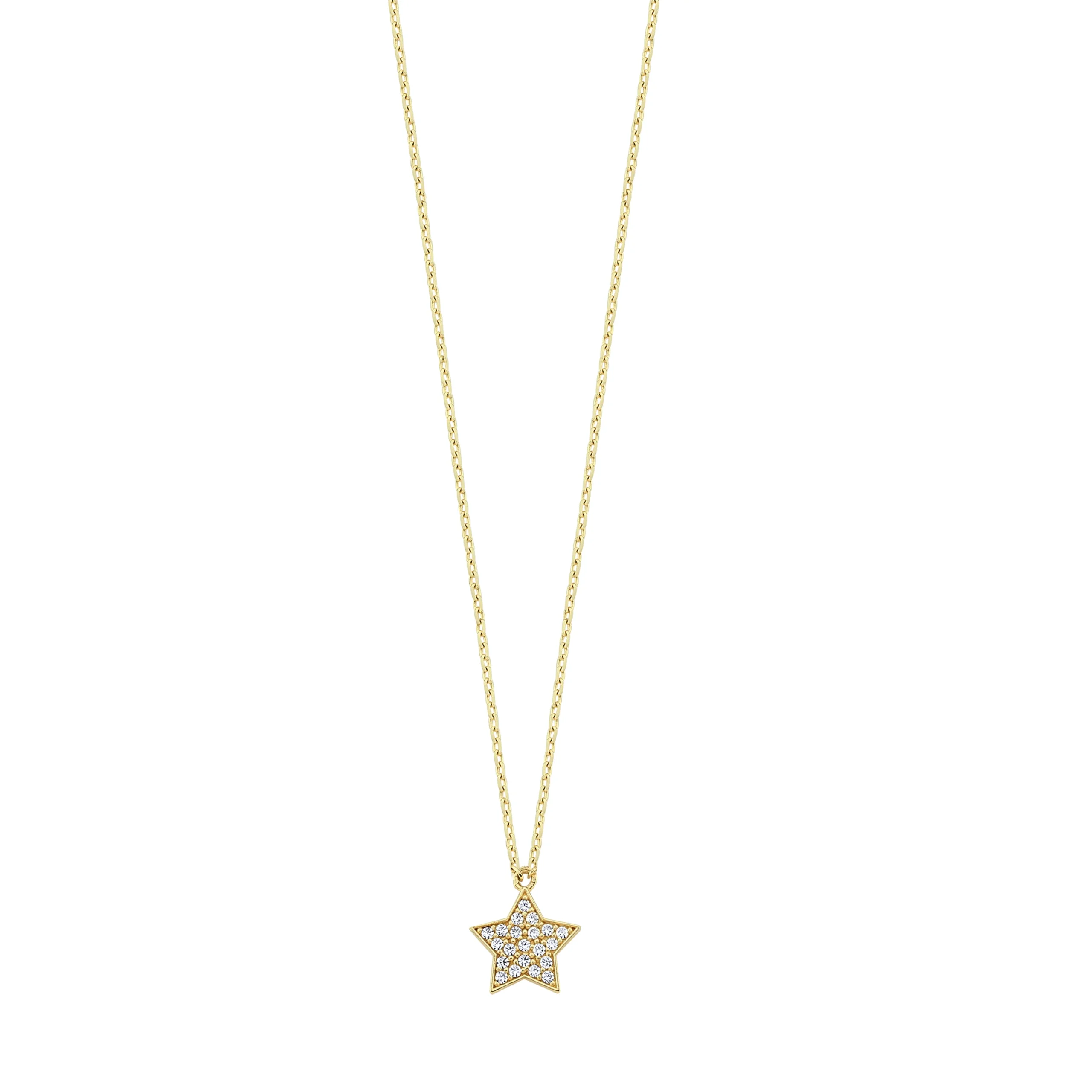 14 ayar Cabaret Taşlı Yıldız Kolye, 43+2 cm uzunluk ve 2,30 gr ağırlık ile zarif ve şık bir kullanım sunar. Hipoalerjenik ve güvenli üretim.