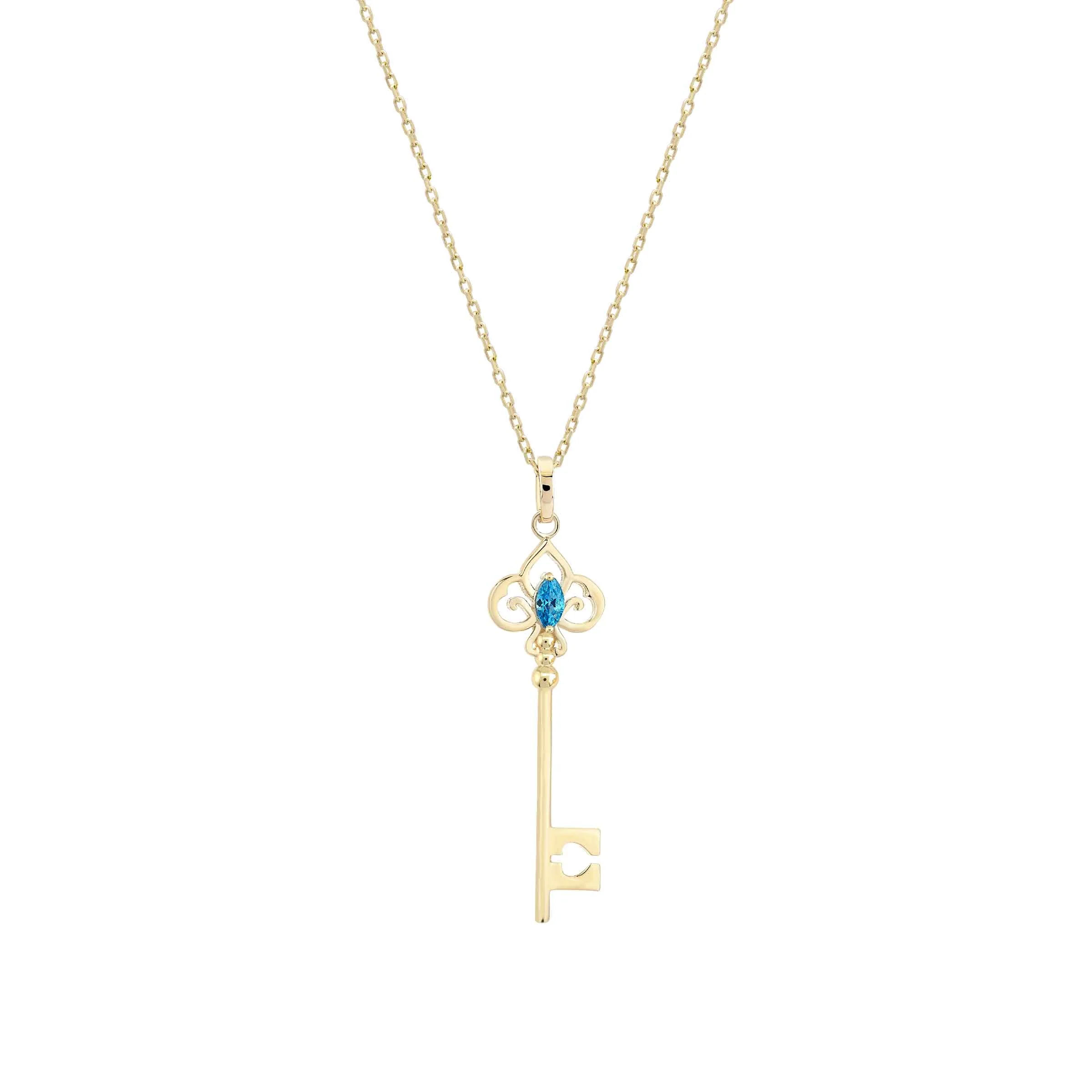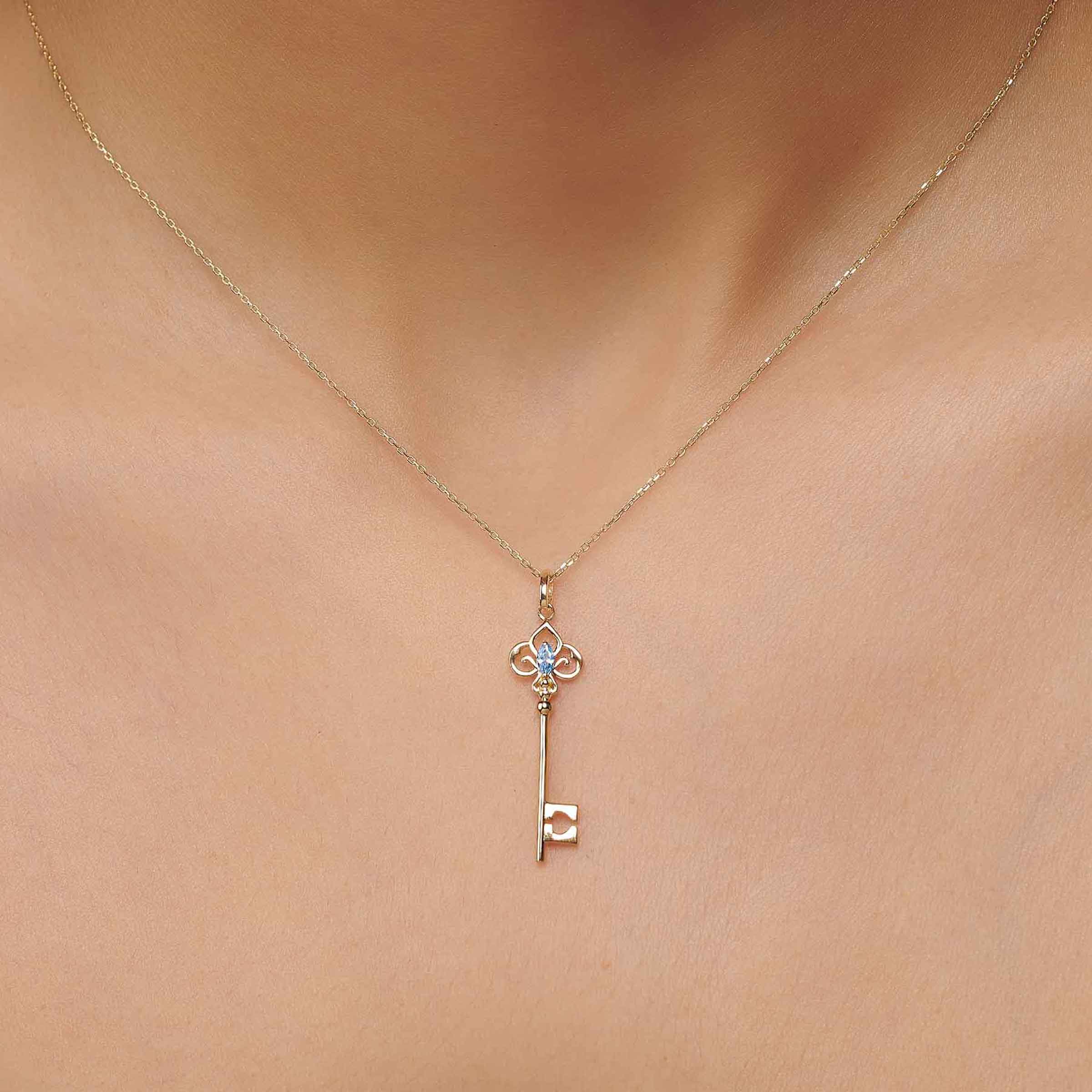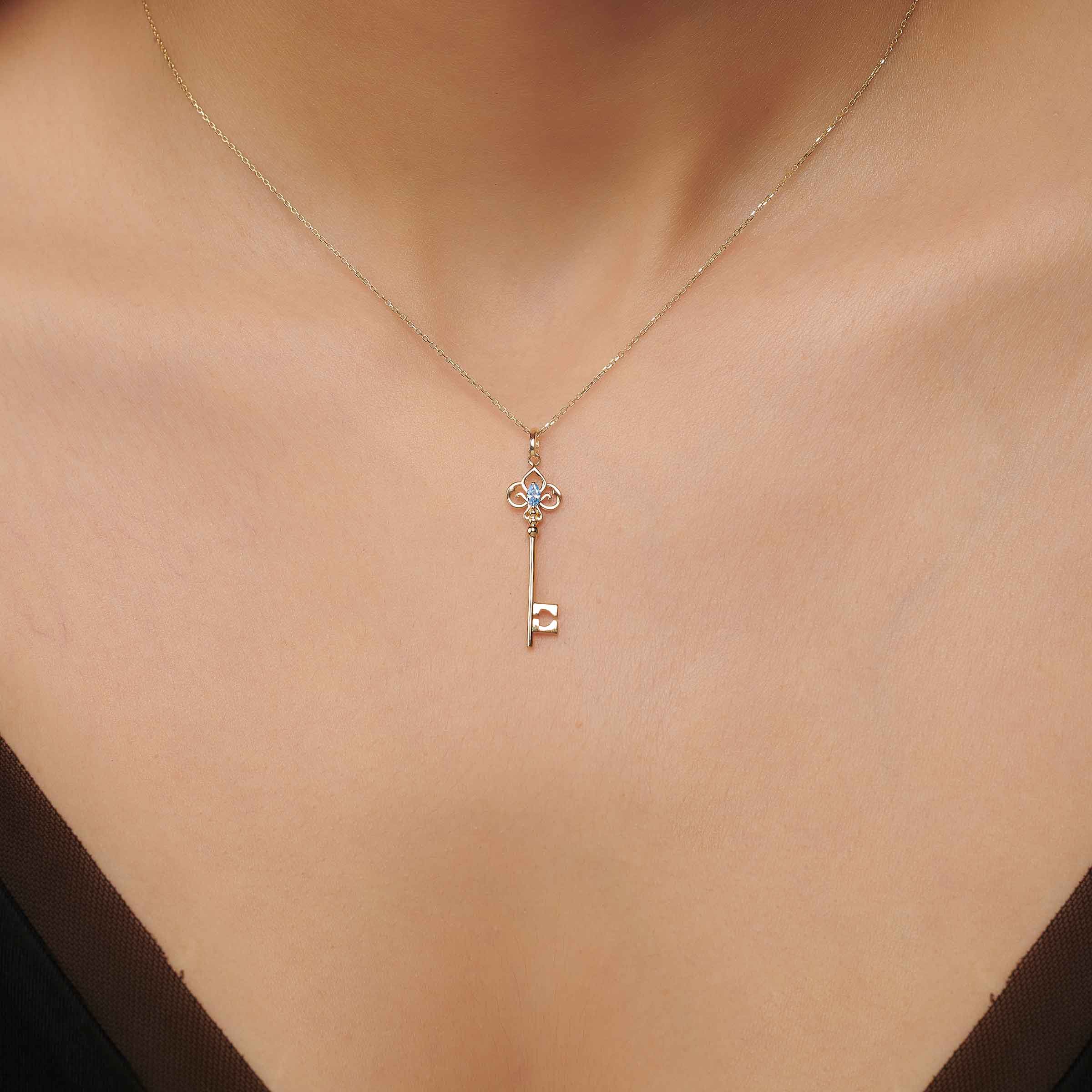 14 ayar altından tasarlanan Dekoratif Kalbin Anahtarı Taşlı Altın Kolye, zarif kalp ve anahtar figürleri ile sevgi, sadakat ve anlam dolu bir hikaye anlatır. Parlak AAA+ zirkon taşlarıyla süslenen bu özel tasarım, boyunda göz alıcı bir şıklık sunar. 2,15 gram ağırlığı ve 43+2 cm uzatmalı zincir uzunluğu ile hem şık hem de konforlu bir kullanım sağlar. Sarı, rose ve beyaz altın renk seçenekleriyle sevdiklerinize anlamlı bir hediye verebilirsiniz.