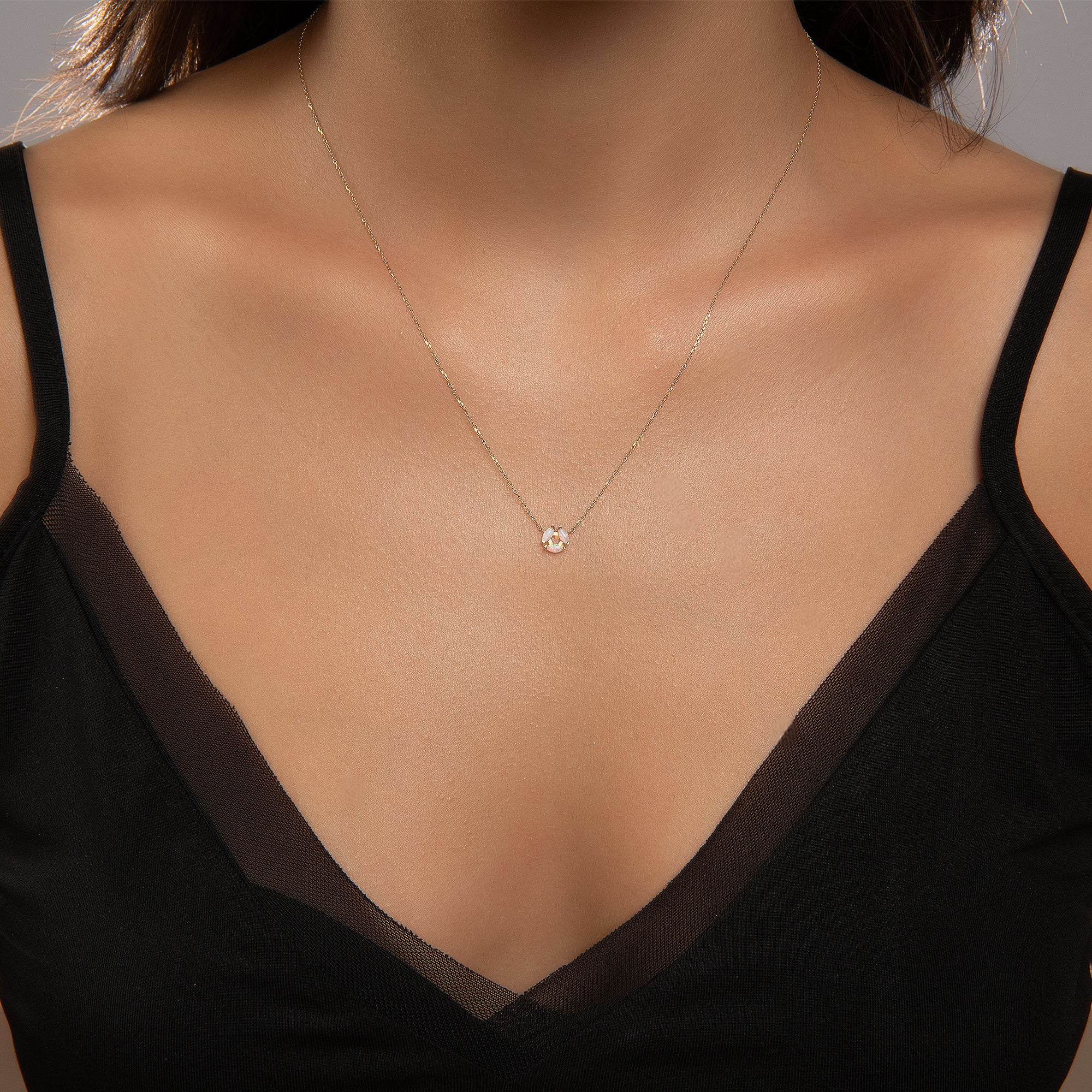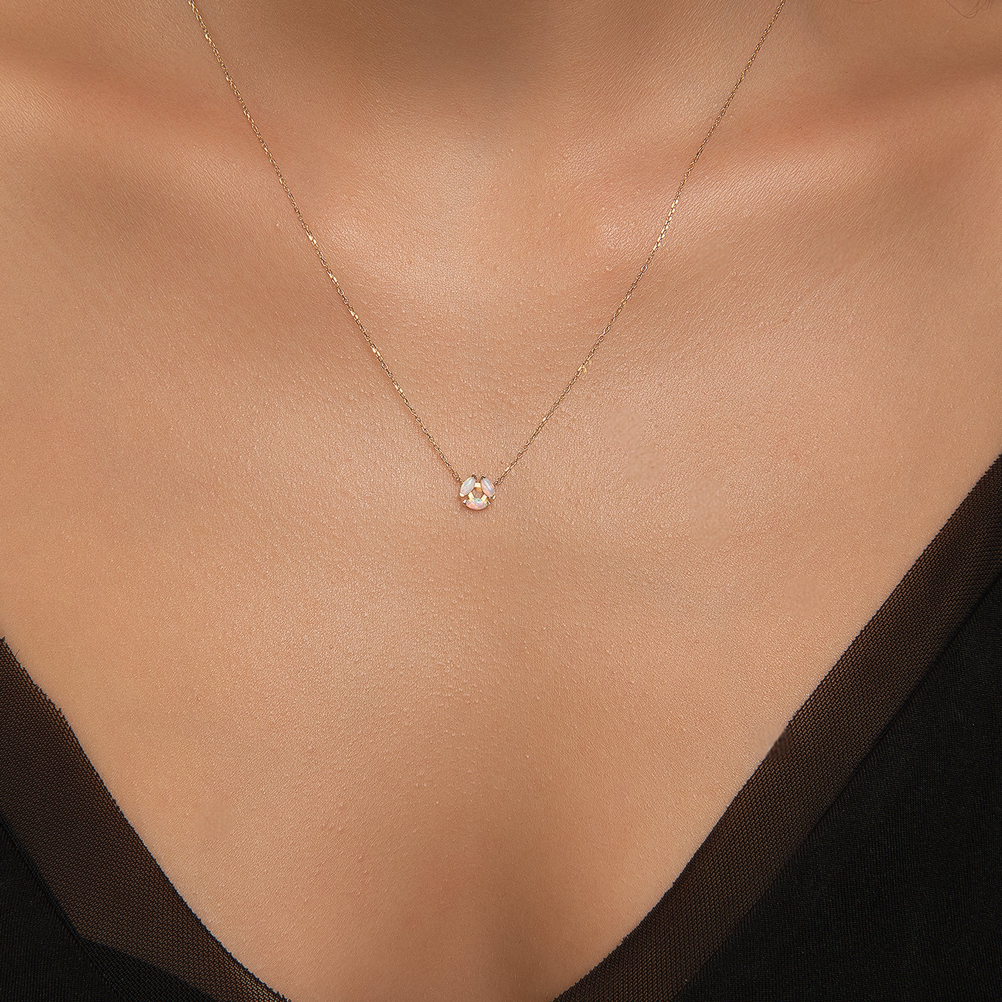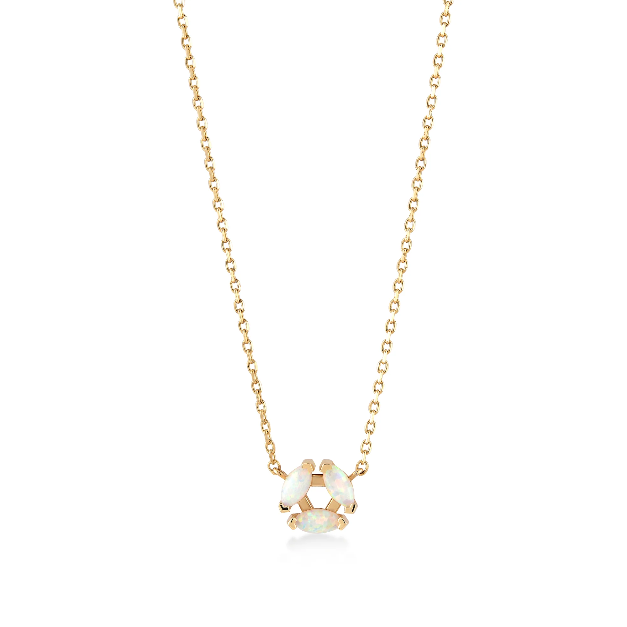 14 ayar Tria Döngü Markiz Form Opalit Taşlı Altın Kolye, 43+2 cm uzunluk ve 1,60 gr ağırlık ile zarif ve şık bir kullanım sunar. Hipoalerjenik ve güvenli üretim.