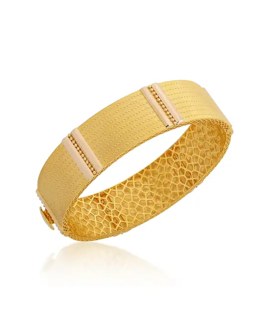 Özel yüzey işçiliği sayesinde ışığı eşsiz bir şekilde yansıtan bu tasarım, hem en özel davetlerde göz alıcı bir mücevher hem de yüksek gramajlı, değerli bir yatırım parçası olarak öne çıkar.