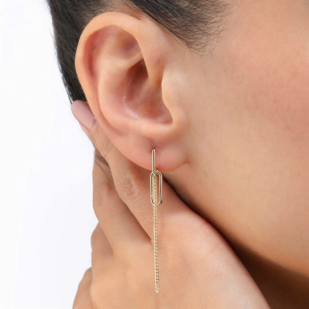14 ayar altından üretilen Link Zincir Sallantılı Altın Küpe, zarif zincir detayı ve sallantılı tasarımıyla modern ve sofistike bir şıklık sunar. Günlük kullanımda veya özel davetlerde rahatlıkla kombinlenebilir. Hafif yapısı sayesinde konforlu kullanım sağlar ve minimal ama dikkat çekici bir görünüm kazandırır.
