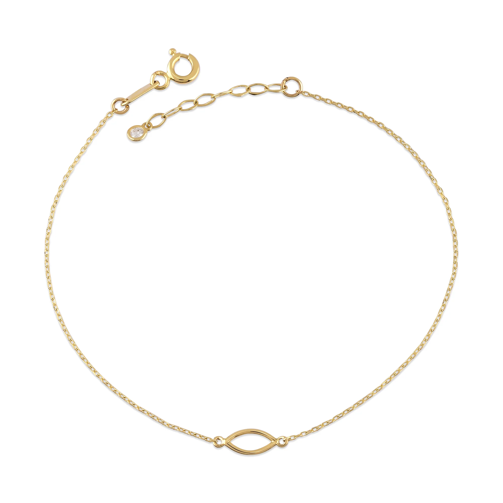 Minimal Stilize Göz Altın Zincir Bileklik, 14 ayar altının parlak dokusuyla tasarlanmış modern bir aksesuardır. Stilize göz detayı zarif bir anlam taşırken, sade zincir yapısı bileğe şık ve modern bir dokunuş kazandırır. 16,5 cm uzunluk + 2 cm uzatma payı ile her bileğe uyum sağlar. Hipoalerjenik ve nikel-kadmiyum içermeyen yapısıyla cilt dostudur. Sarı, rose ve beyaz altın renk seçenekleriyle her stile uyum sağlayan zarif bir modeldir.