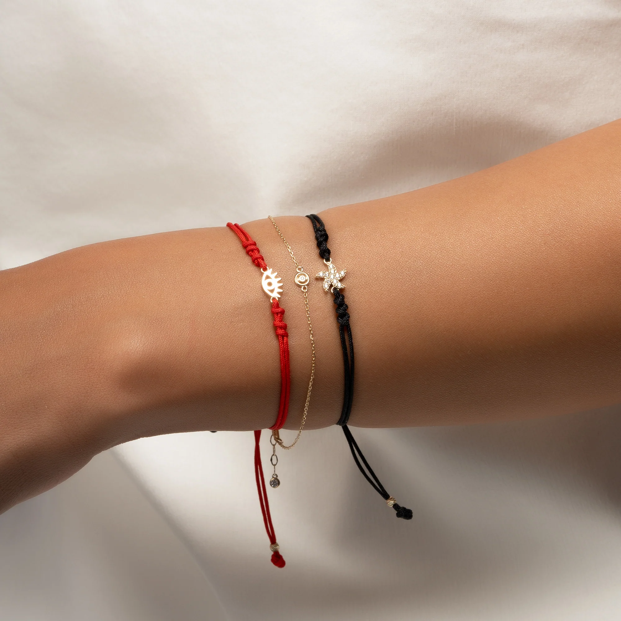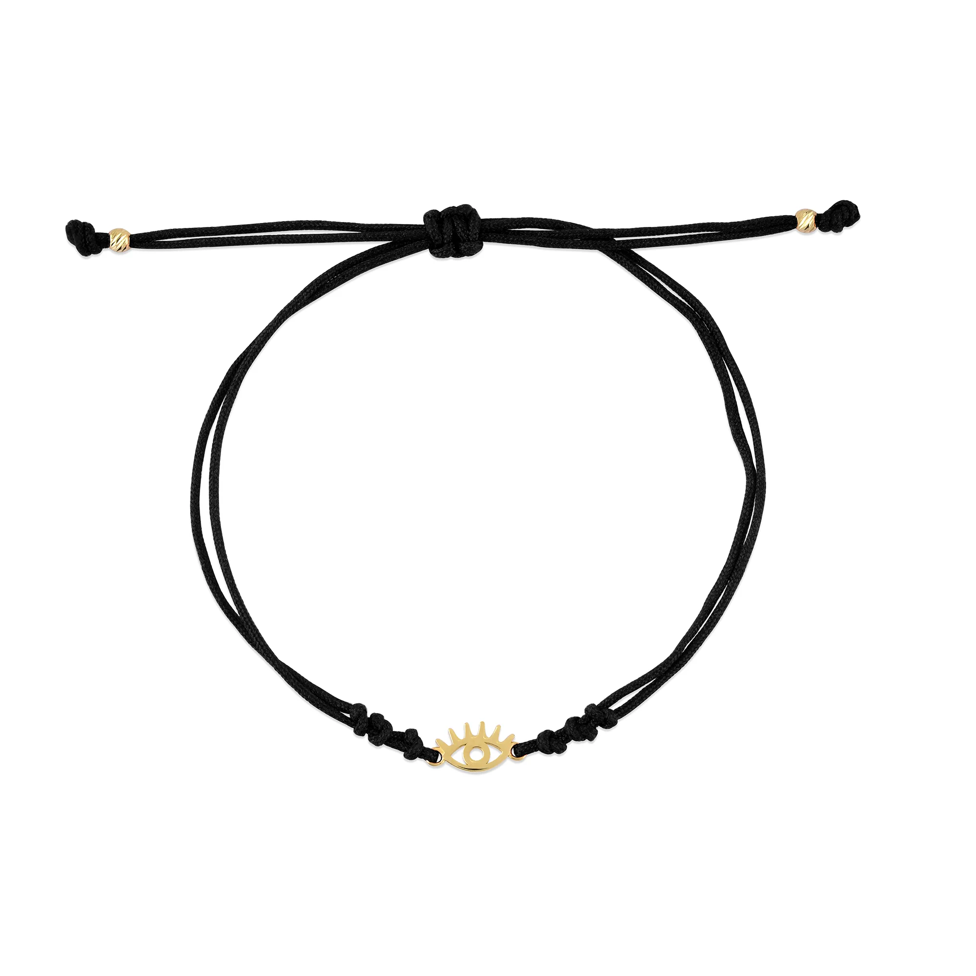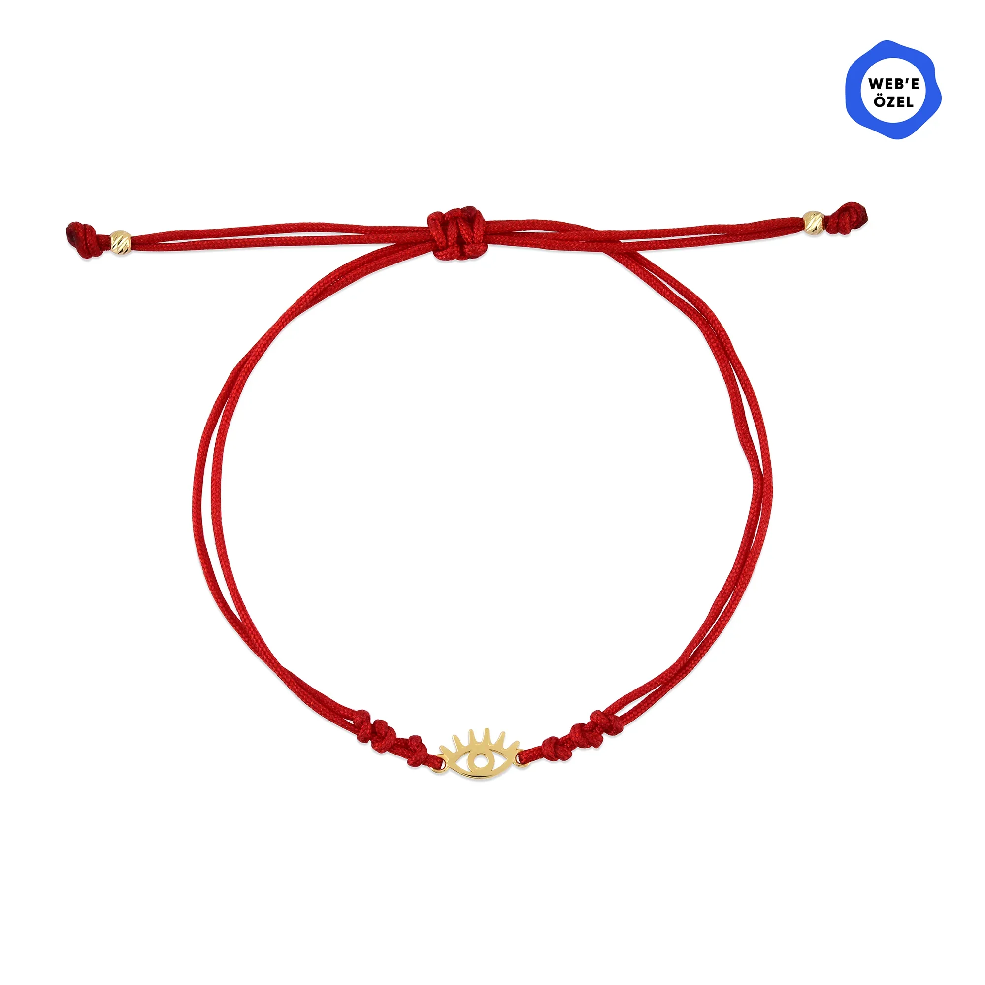 14 ayar Motto Çizgisel Altın Göz İpli Bileklik, ayarlanabilir uzunluk ile zarif ve şık bir kullanım sunar. Hipoalerjenik ve güvenli üretim.