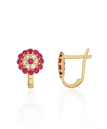 İkra Kuyumculuk kalitesiyle 14 ayar altından özenle üretilen bu Pembe Taşlı Altın Çocuk Küpe, çocukların dünyasına neşeli ve ışıltılı bir dokunuş katıyor. Çocukların hassas ten yapısı göz önünde bulundurularak tasarlanan pürüzsüz yüzeyi ve güvenli kilit mekanizması, usta işçilikle birleşerek gün boyu konforlu bir kullanım sunar.