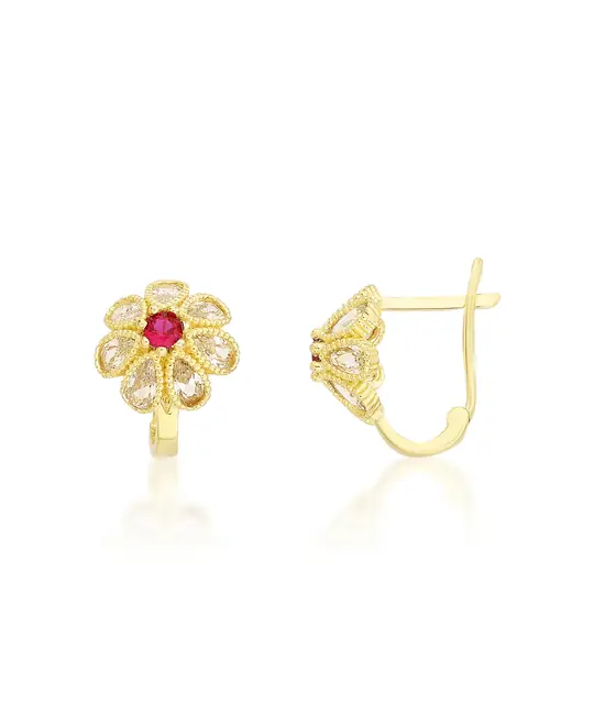 İkra Kuyumculuk kalitesiyle 14 ayar altından özenle üretilen bu Pembe Taşlı Altın Çocuk Küpe, pembe taşın neşeli ışıltısını zarif bir tasarımla buluşturuyor. Çocukların hassas ten yapısı düşünülerek hazırlanan pürüzsüz yüzeyi ve güvenli kilit mekanizması, usta işçilikle birleşerek gün boyu konforlu ve emniyetli bir kullanım sunar.
