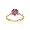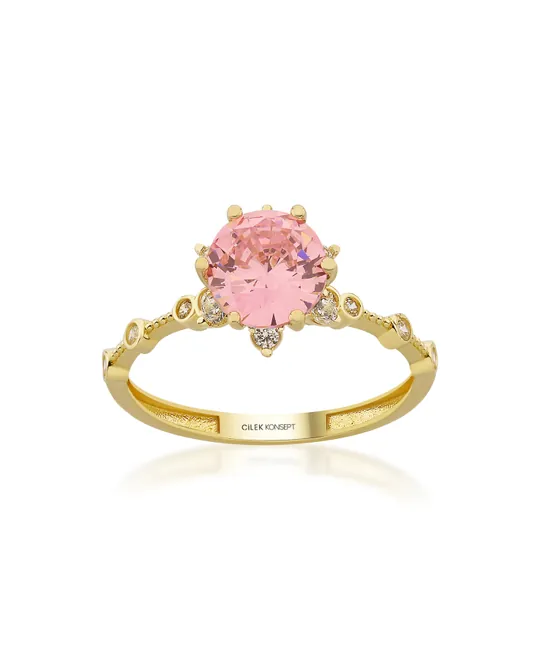 Pembe Taşlı Altın Lotus Yüzük