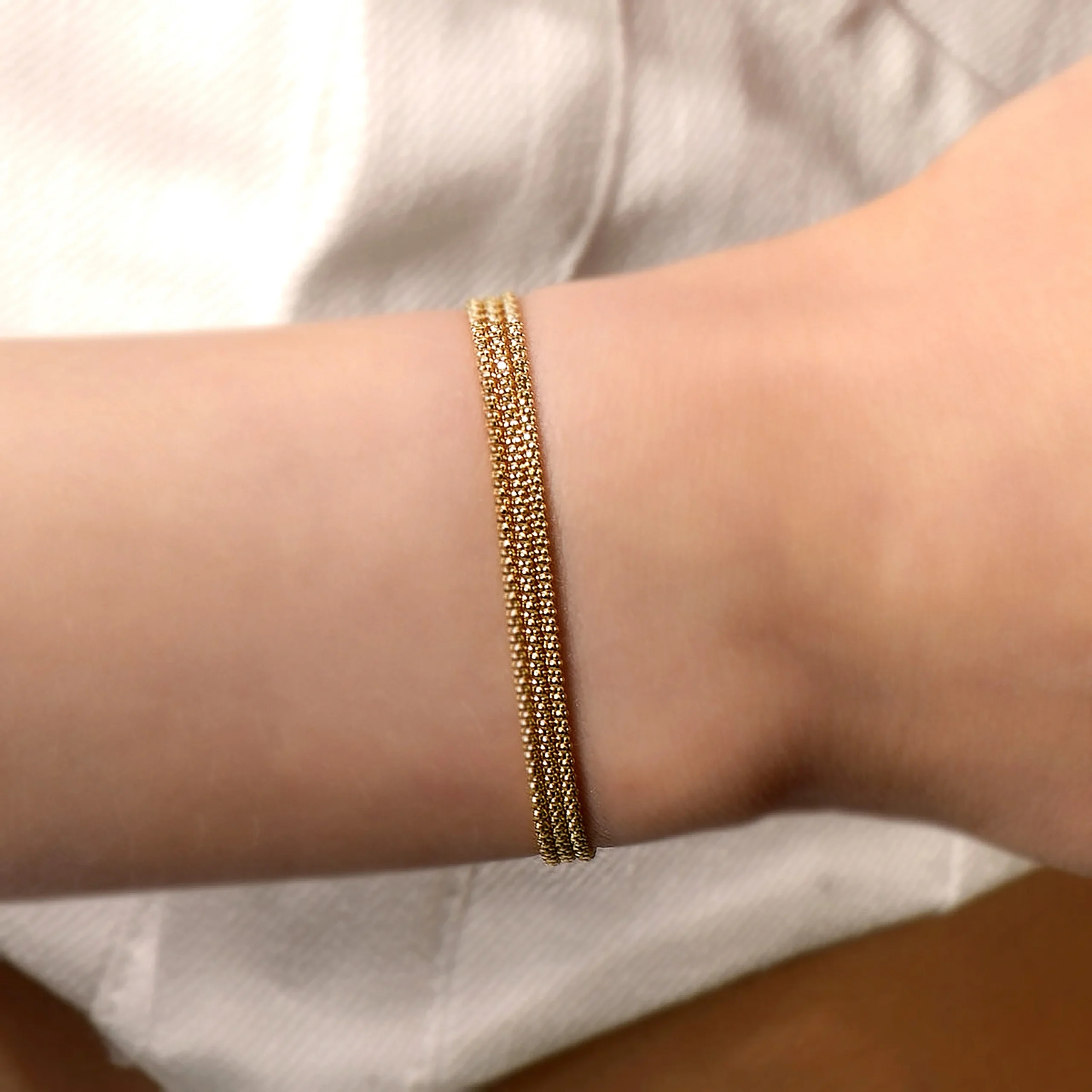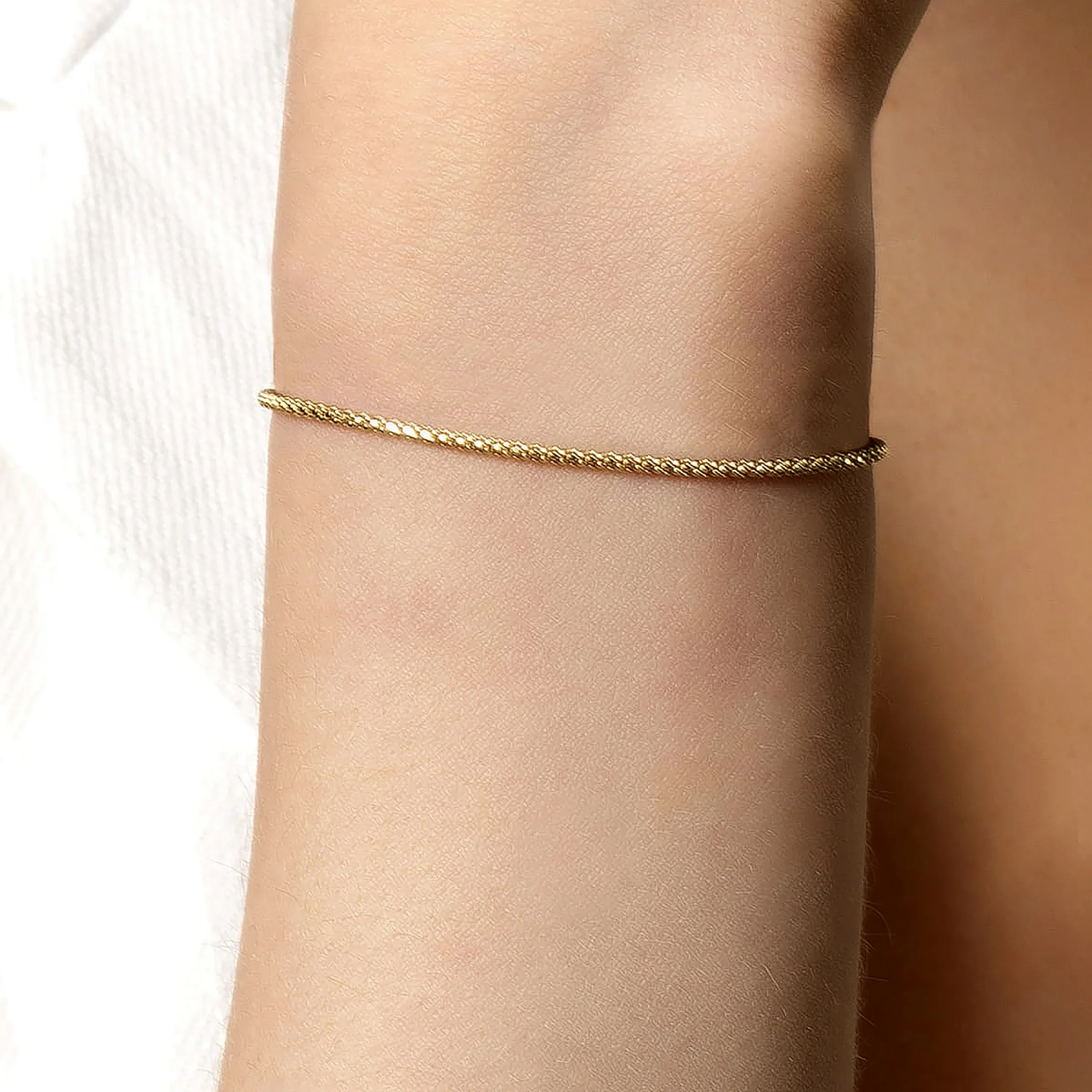 14 ayar altından üretilmiş Popcorn Zincir Altın Bileklik, zarif ve modern bir tasarıma sahip şık bir aksesuardır. Popcorn zincir formu ile bileğinize estetik bir dokunuş katarken, yaklaşık 2,10 gram ağırlığındaki hafif yapısı sayesinde günlük kullanımda ve özel günlerde rahatça şıklığınızı tamamlar.