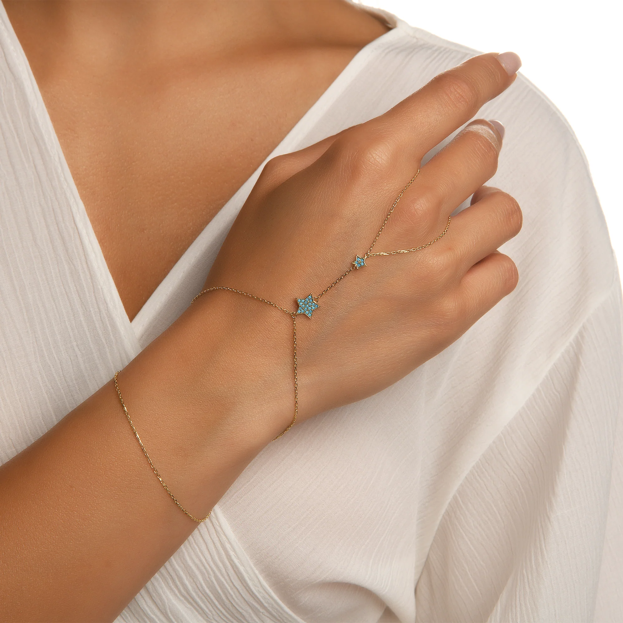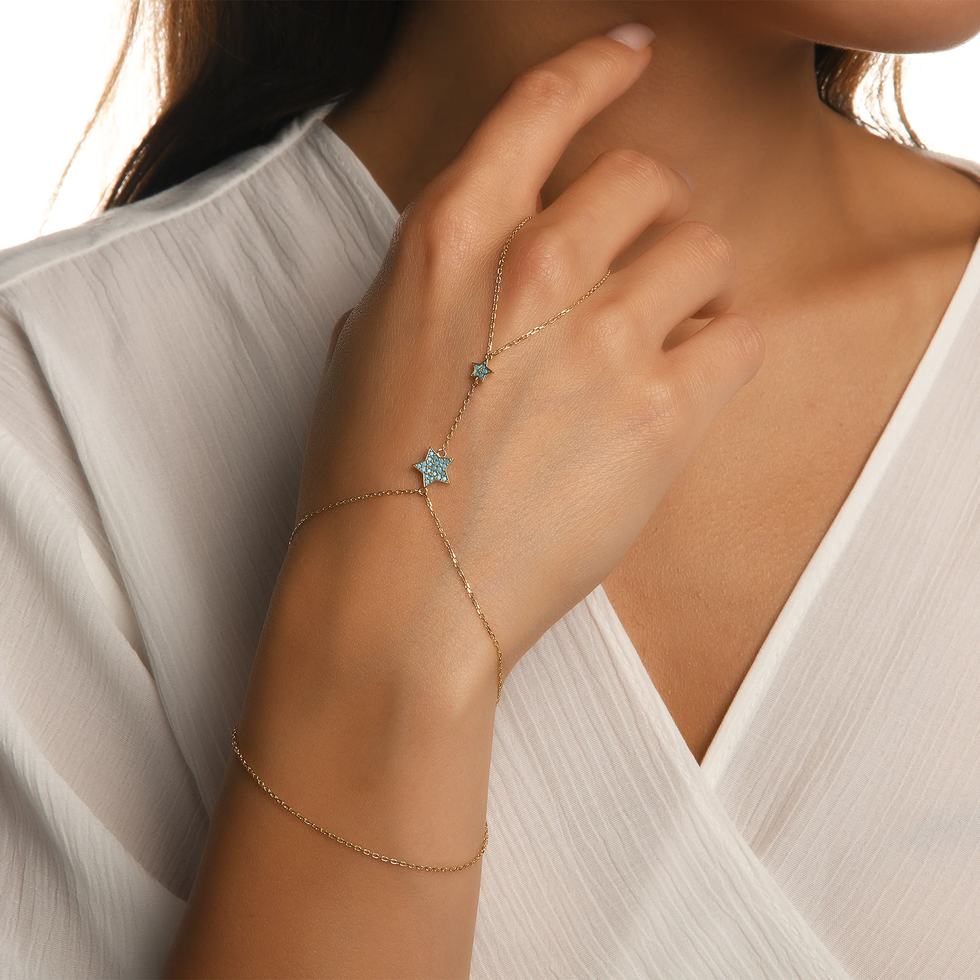 14 ayar altınla tasarlanan Renk Seçenekli Taşlı Yıldız Altın Şahmeran, modern ve zarif bir şıklık sunar. Yıldız motifli parıltılı zirkon taşları, bileklik ve yüzük arasındaki uyumla bileğinizde göz alıcı bir ışıltı yaratır. 2,60 gr ağırlığındaki bu özel tasarım, hem günlük hem de özel kombinlerde kolayca uyum sağlayarak stilinize ışıltılı bir dokunuş katar. Sarı, rose ve beyaz altın seçenekleriyle her zevke hitap eder.