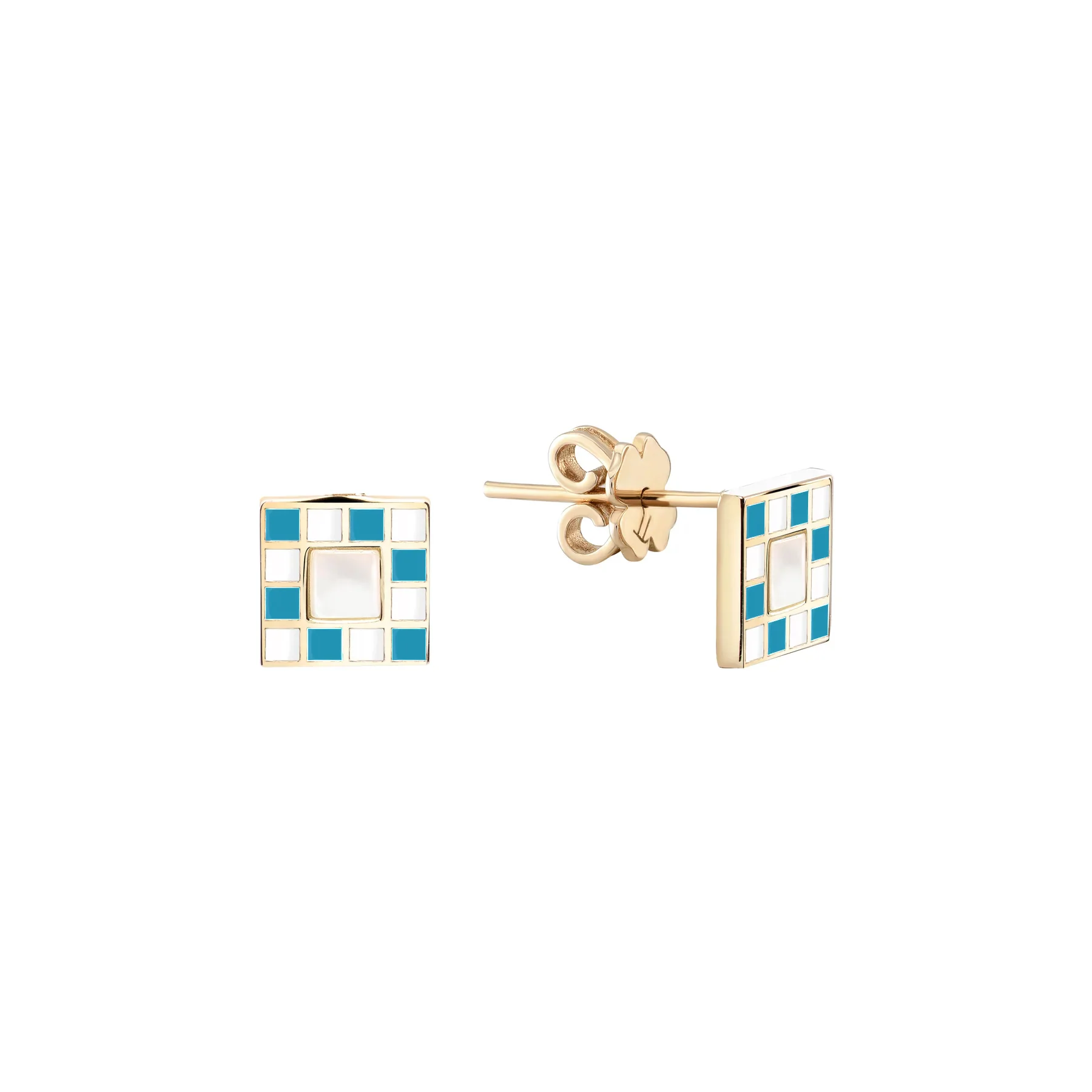 Rhythm Mineli Kare Tek Altın Küpe