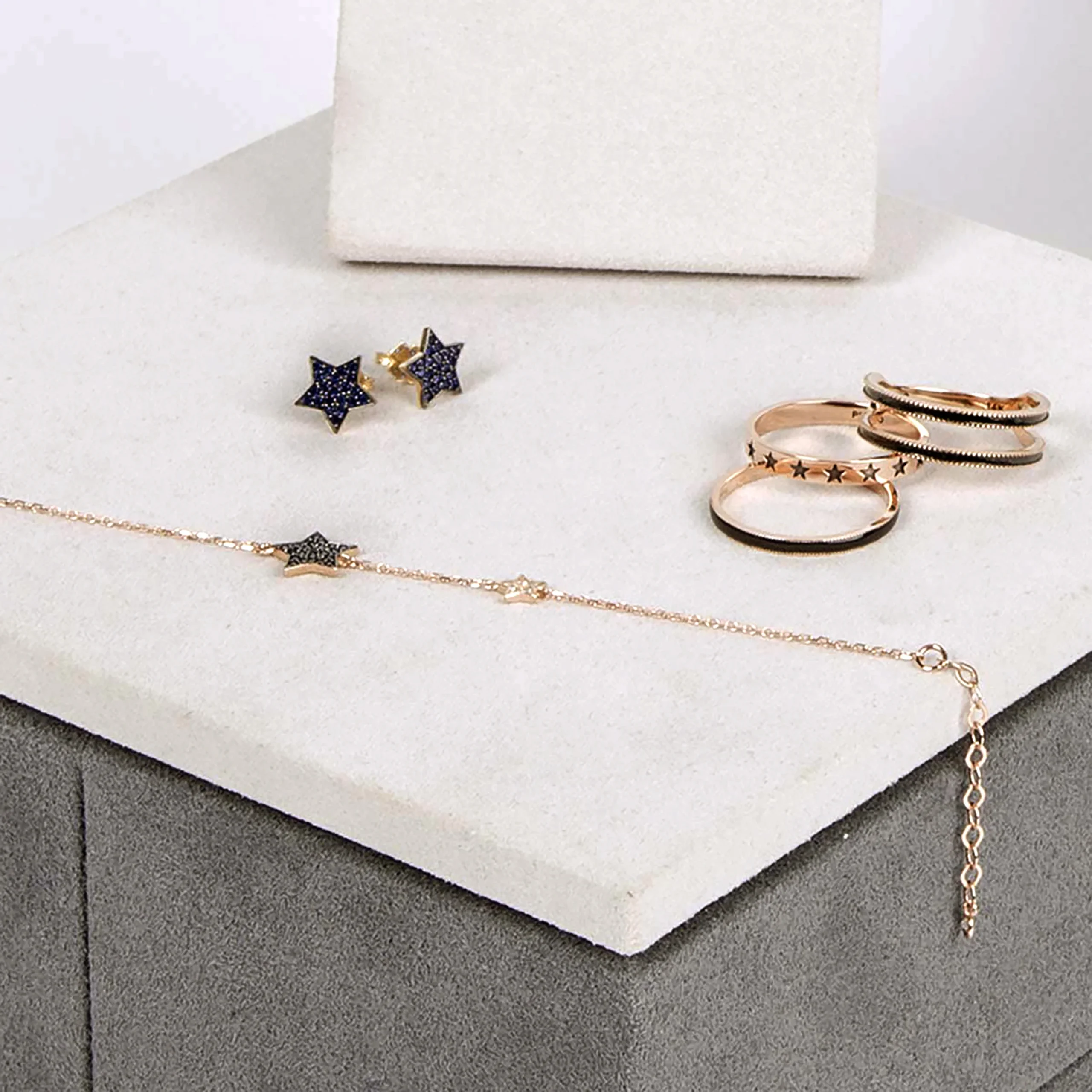 14 ayar altın ile el yapımı olarak tasarlanmış Rhythm Yıldızlı Altın Yüzük, dinamik bir ritim içinde sıralanan zarif yıldız motifleriyle modern ve göz alıcı bir şıklık sunar. Yaklaşık 1,70 gram ağırlığındaki bu yüzük, sade altının form ve desenle buluştuğu özgün bir estetiğe sahiptir. Anti-alerjik (Hypoallergenic) olup nikel ve kadmiyum içermez. Rose, Sarı ve Beyaz maden altın seçenekleriyle üretilmektedir.