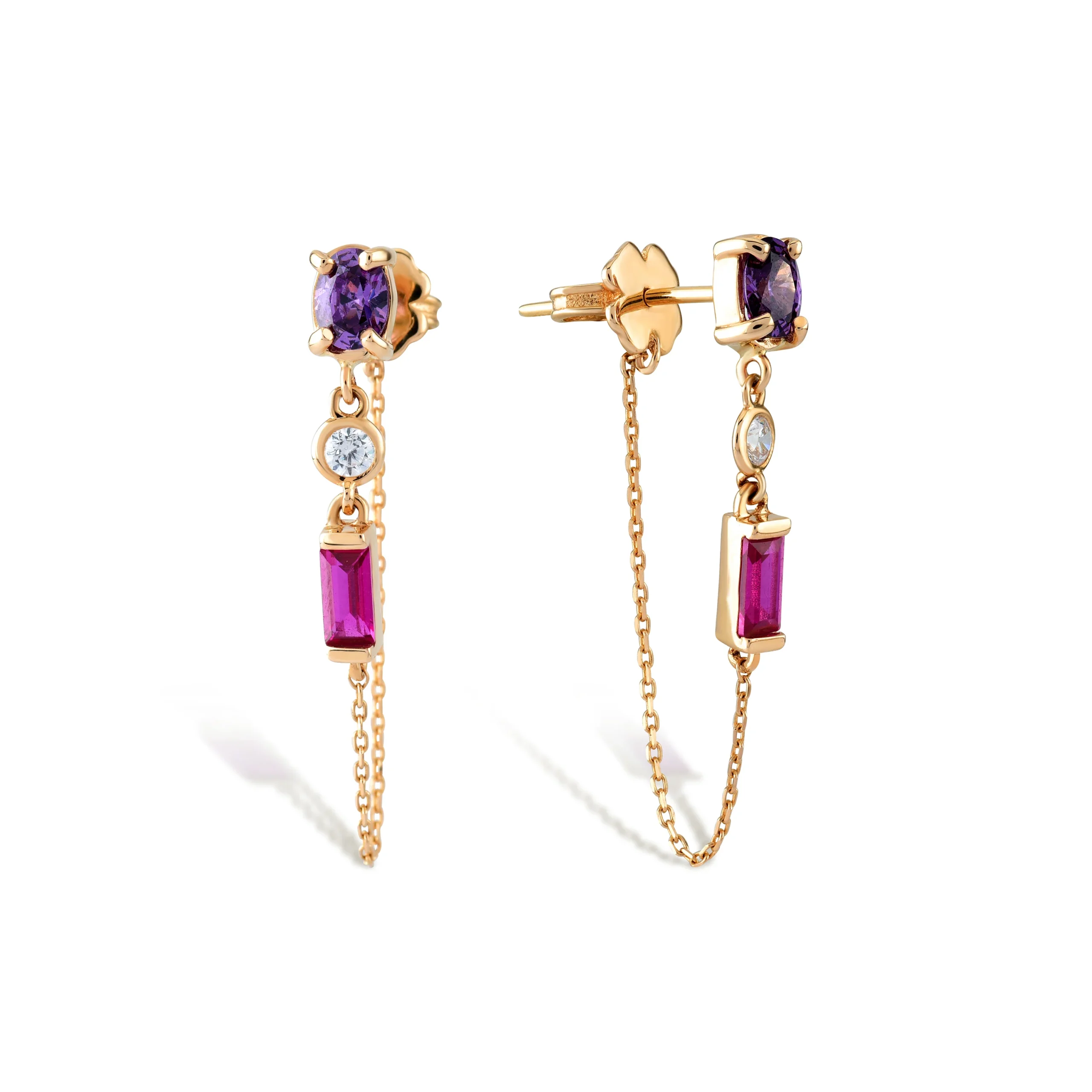 Üzerindeki 5A zirkon taşlar, küpeye ışıltılı bir görünüm kazandırır.