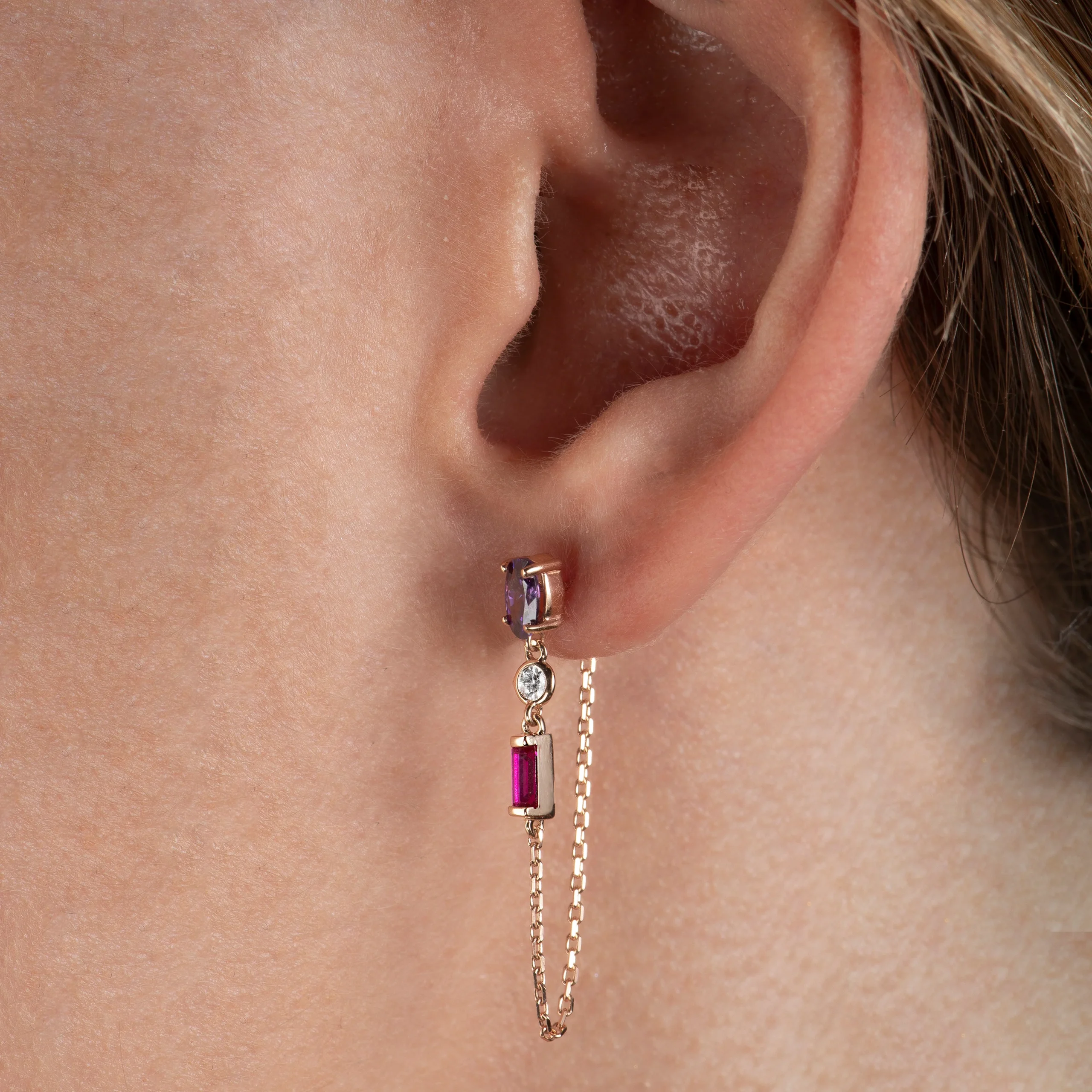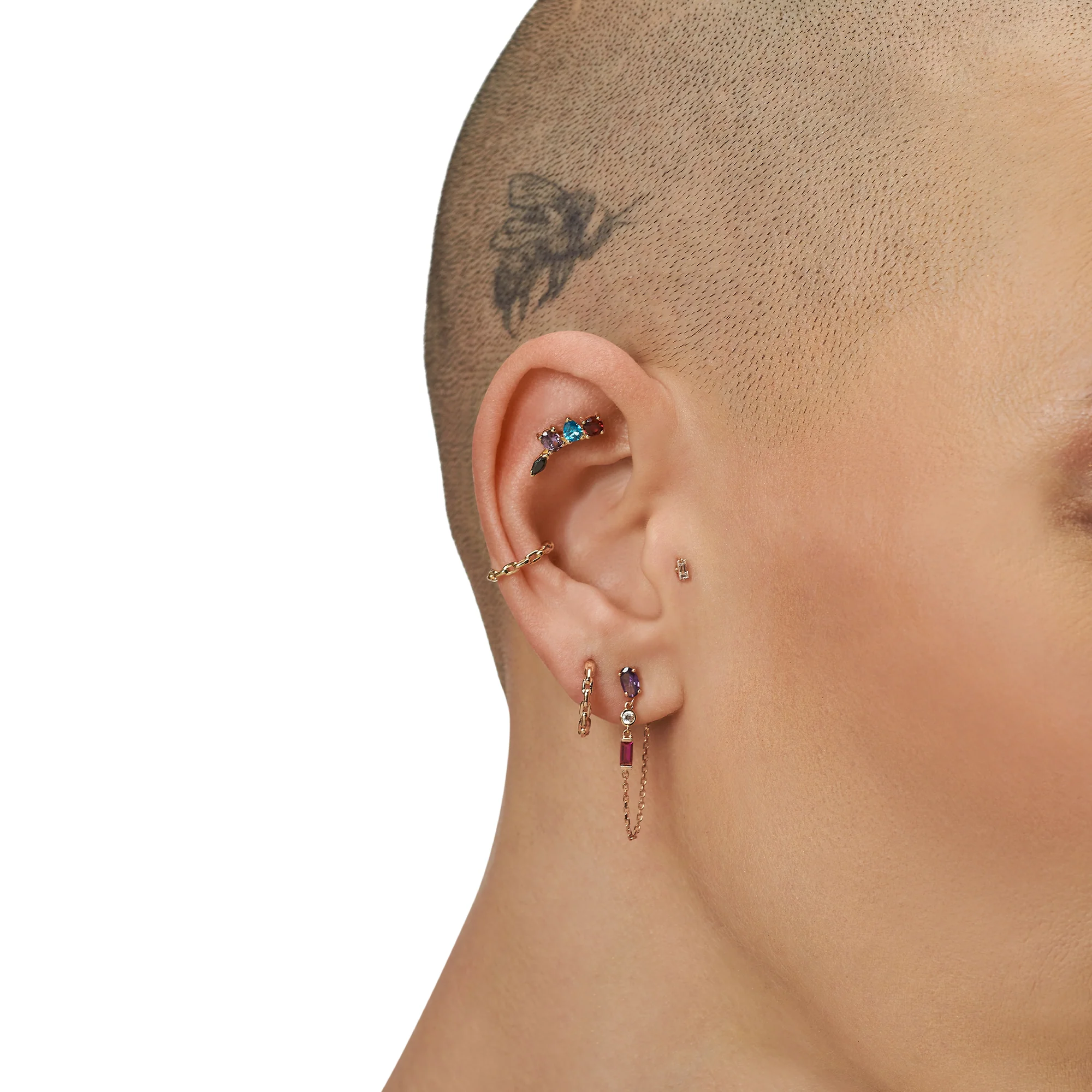 Çift küpe yapısı sayesinde her iki kulakta dengeli bir şıklık sunar.