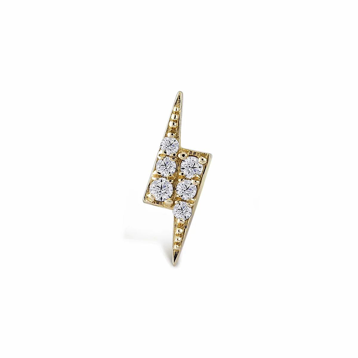 14 ayar Şimşek Pırlanta Piercing, 0,02 CT pırlanta detayı ile zarif ve şık bir kullanım sunar. Hipoalerjenik ve güvenli üretim.