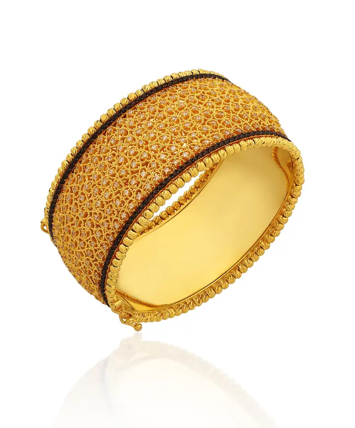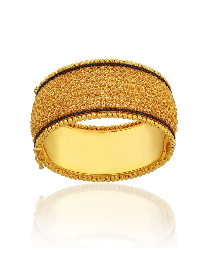 İkra Kuyumculuk kalitesiyle 14 ayar altından özenle üretilen bu Yadigar Altın Dorikalı Bilezik, koleksiyonun en görkemli parçalarından biridir. Tasarımı, altının ağırbaşlı duruşunu Dorika toplarının hareketli ve ışıltılı dokusuyla birleştirerek klasik bilezik formuna modern bir yorum getirir.