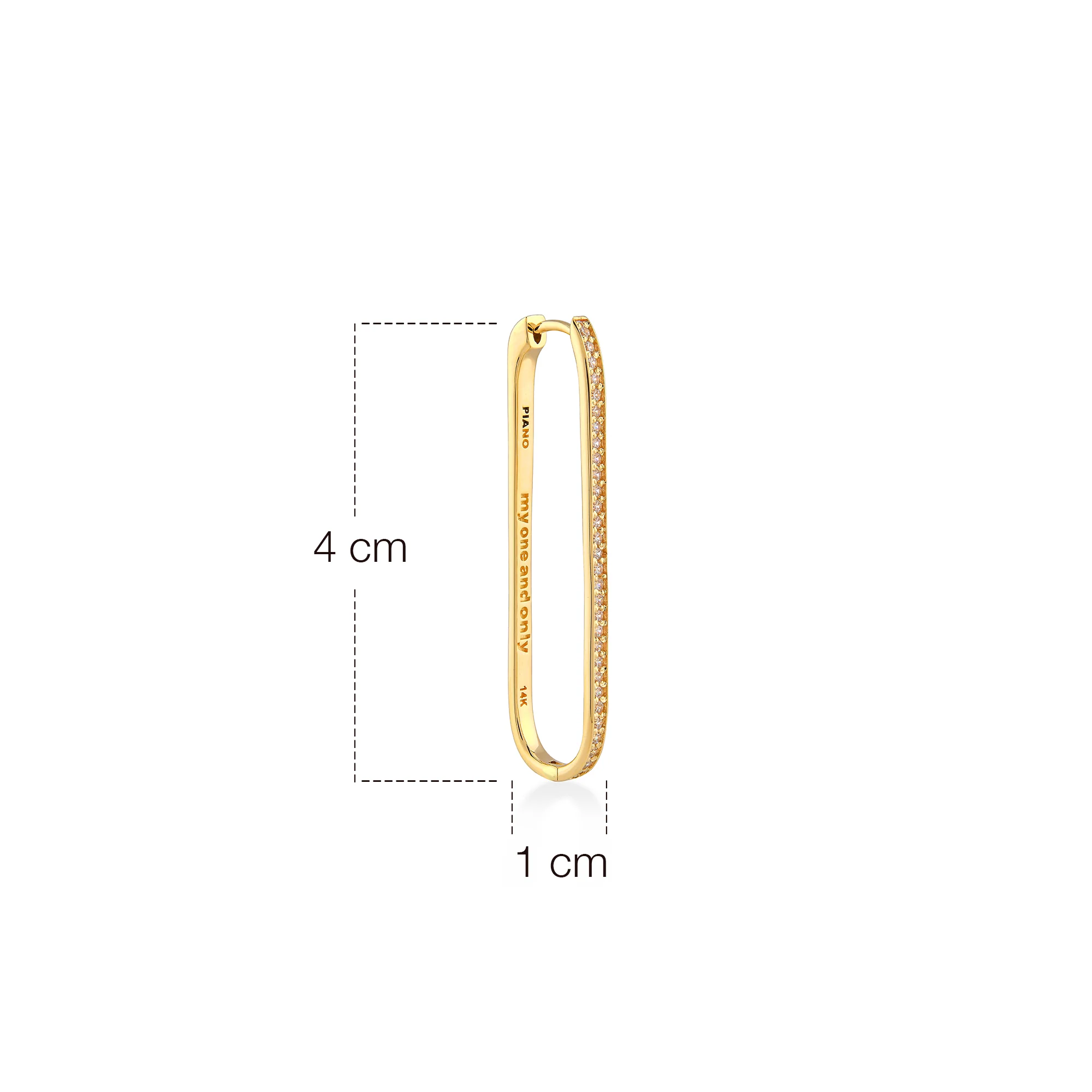 14 ayar altından zarafetle tasarlanan Yanları Taşlı Uzun Oval Halka Küpe, modern çizgileri ve parıltılı zirkon taş detaylarıyla dikkat çeker. Tek olarak satılan bu özel tasarım, uzun oval formu sayesinde yüz hatlarını incelterek sofistike bir görünüm kazandırır. Sarı, rose ve beyaz altın seçenekleriyle her stile uyum sağlar.