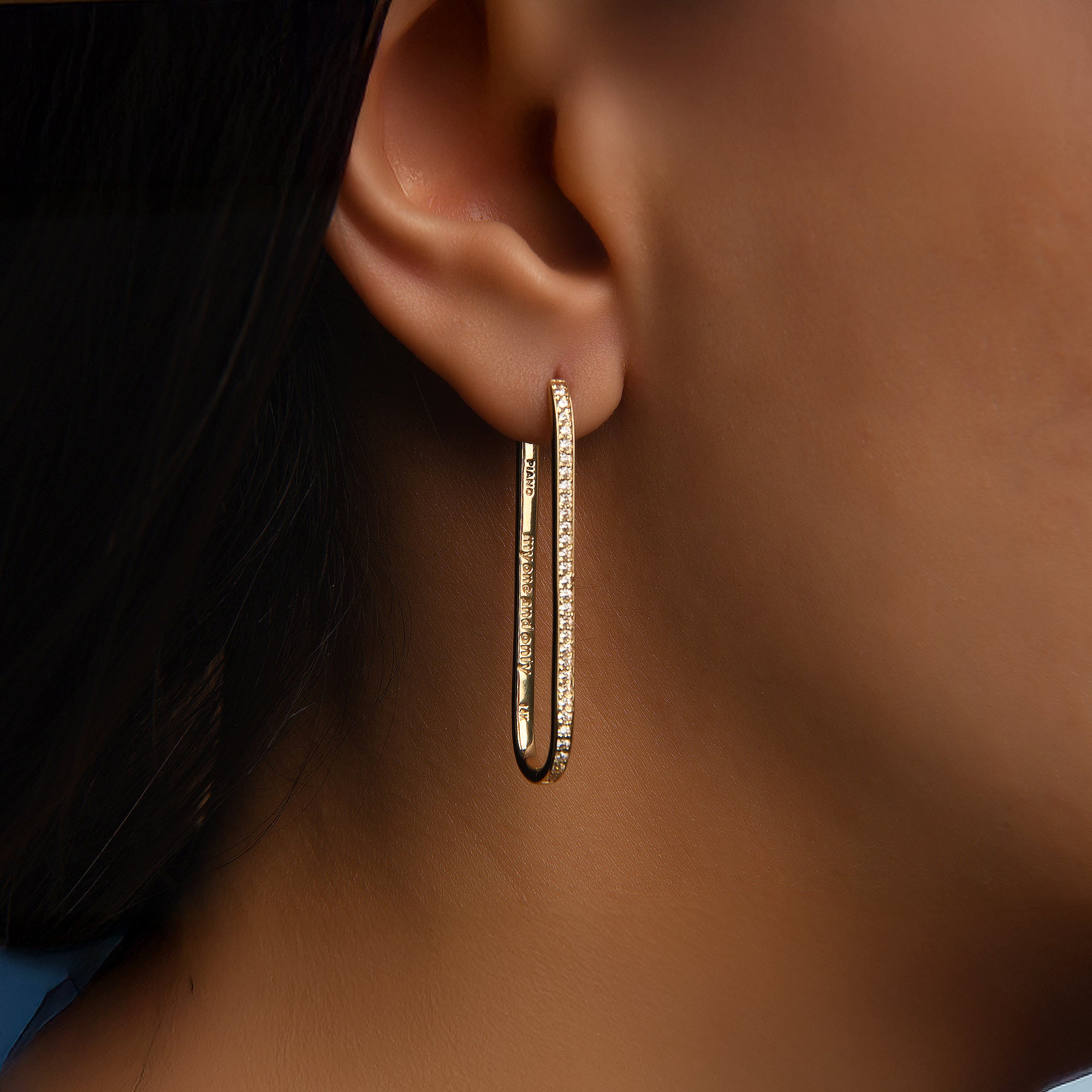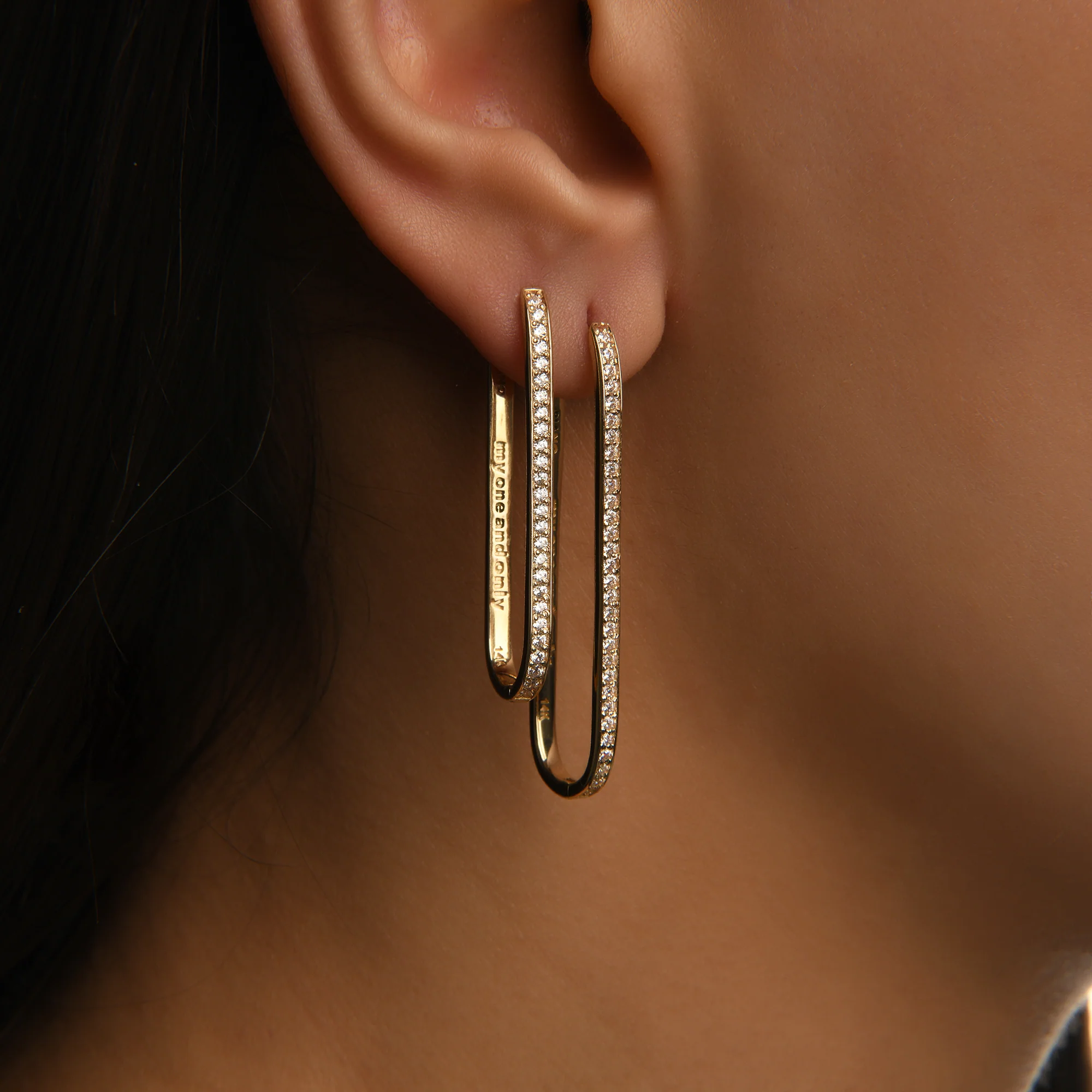 Yanları Taşlı Uzun Oval Tek Halka Küpe (Tall)