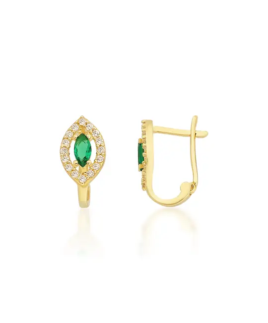 Yeşil Taşlı Altın Çocuk Küpe