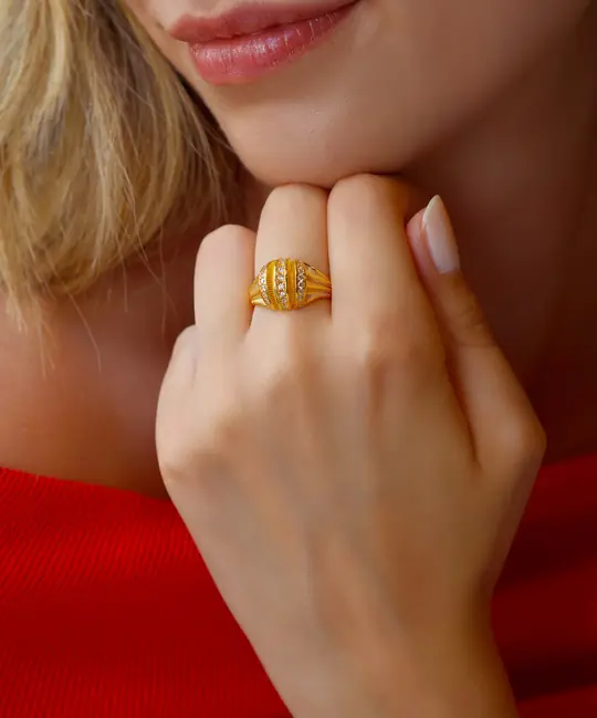 İkra Kuyumculuk kalitesiyle 14 ayar altından üretilen bu Zarafet Altın Yüzük, ismini taşıyan zarif tasarımı ve incelikli işçiliğiyle stilinize şıklık katıyor. Yaklaşık 2.74 gram ağırlığındaki bu model, modern ve estetik formuyla hem günlük kullanımda hem de özel günlerde parmağınızda asil bir duruş sergiler.