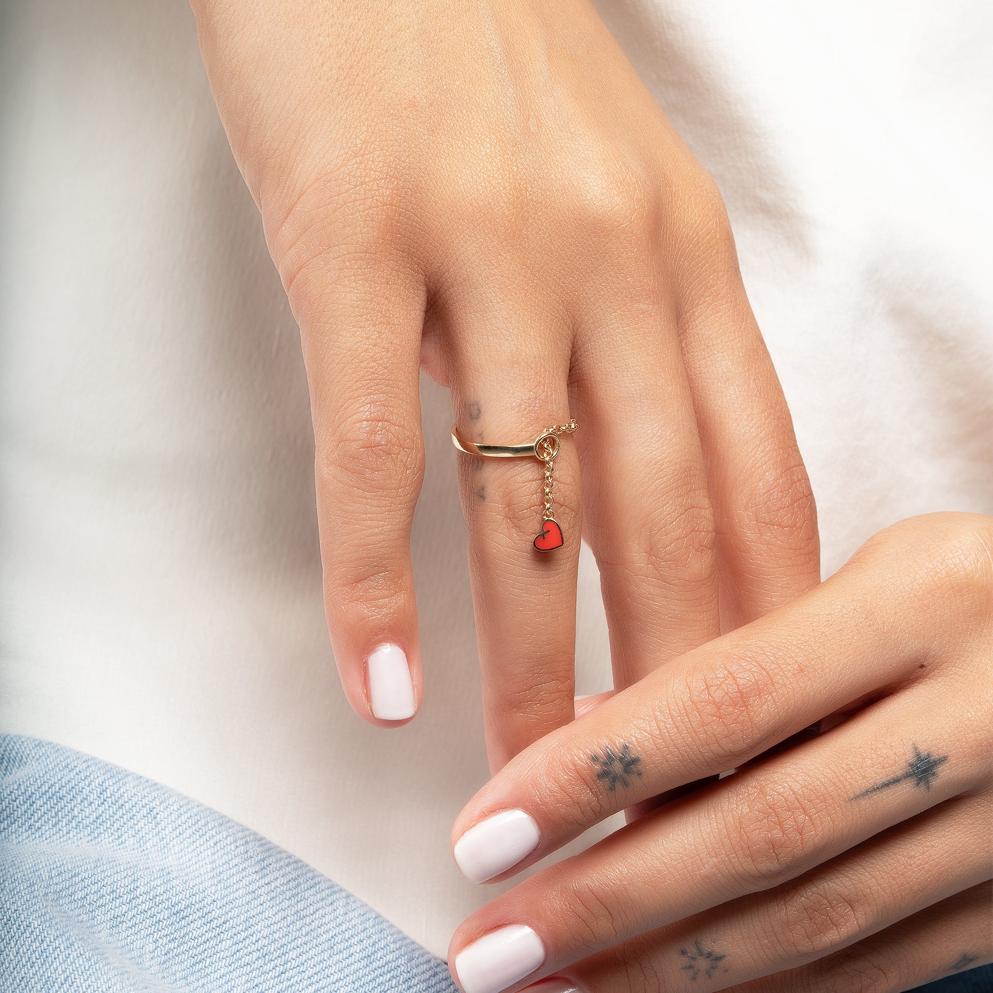 14 ayar altından üretilen Zincir Sallantılı Kalp Mineli Altın Yüzük, zarif ve hareketli tasarımıyla dikkat çekiyor. Yüzük, üzerindeki mineli kalp detayı ve sallantılı zincir özelliği sayesinde modern ve feminen bir estetik sunar. Yaklaşık 1,40 gram ağırlığındadır. Anti-alerjik (Hypoallergenic) olup nikel ve kadmiyum içermez. Sarı, Rose ve Beyaz altın seçenekleriyle üretilmektedir.
